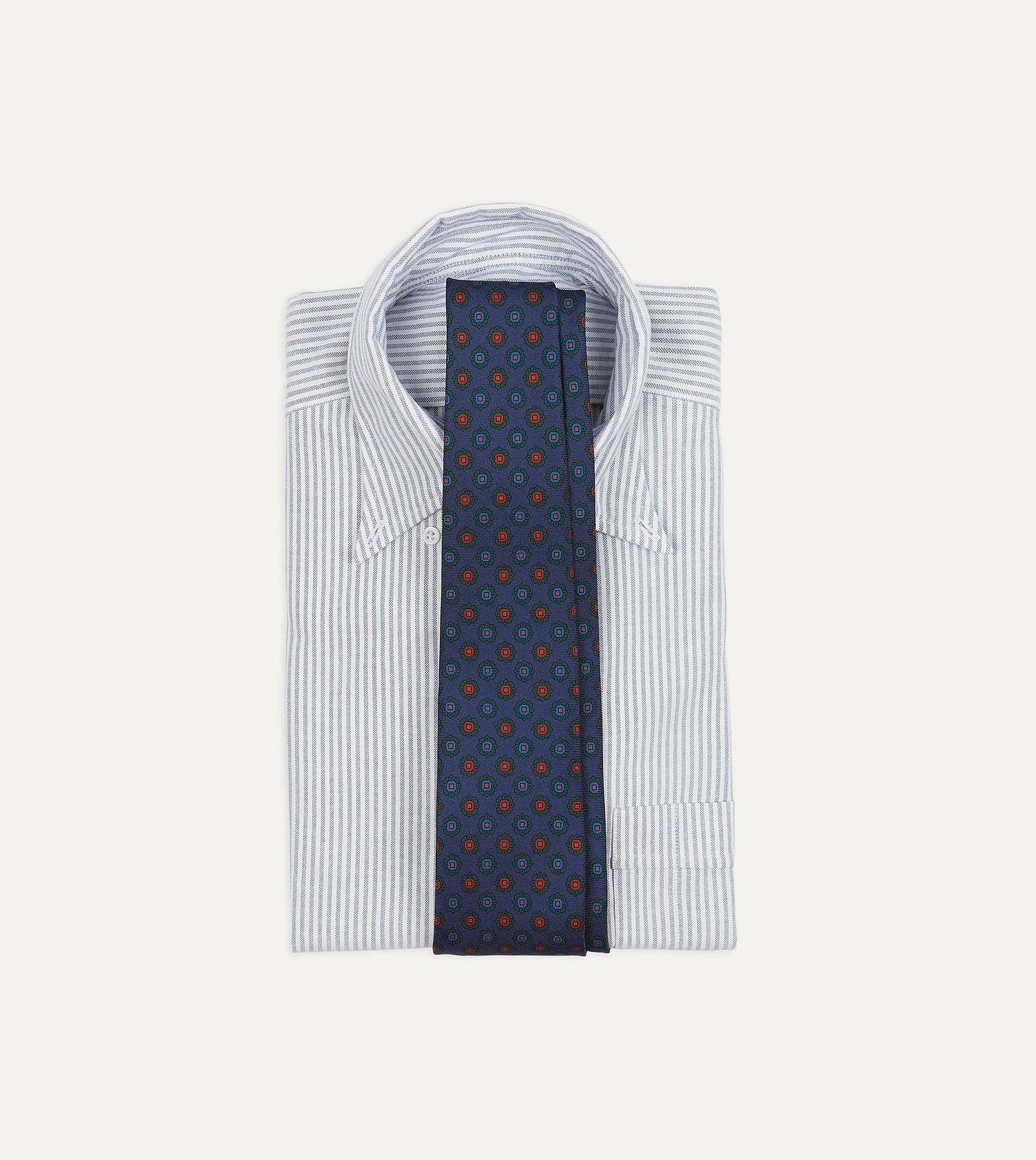 An ornate medallion design simply exudes elegance, particularly when printed on pure silk and hand rolled by our dedicated tiemakers in the heart of east London.