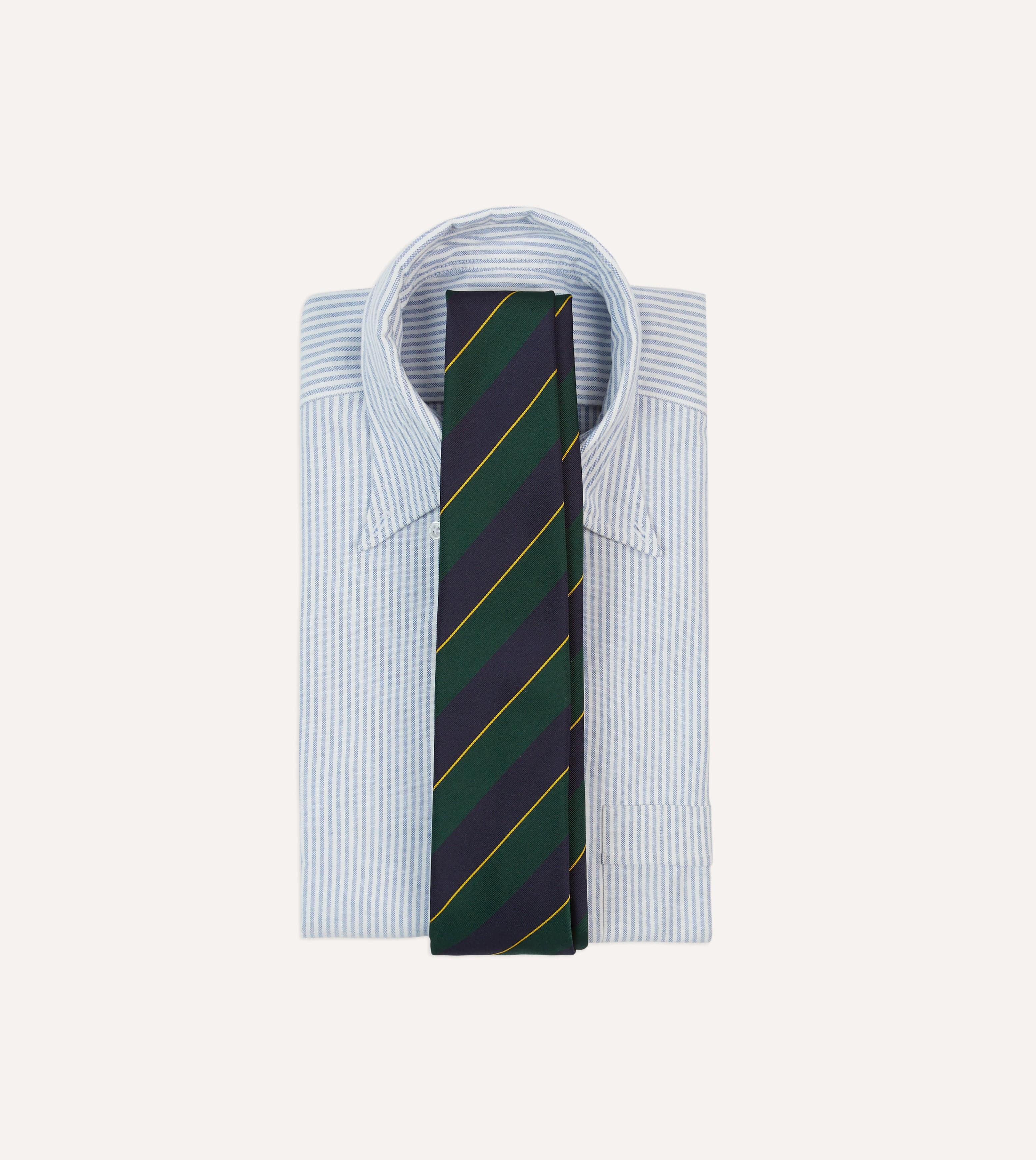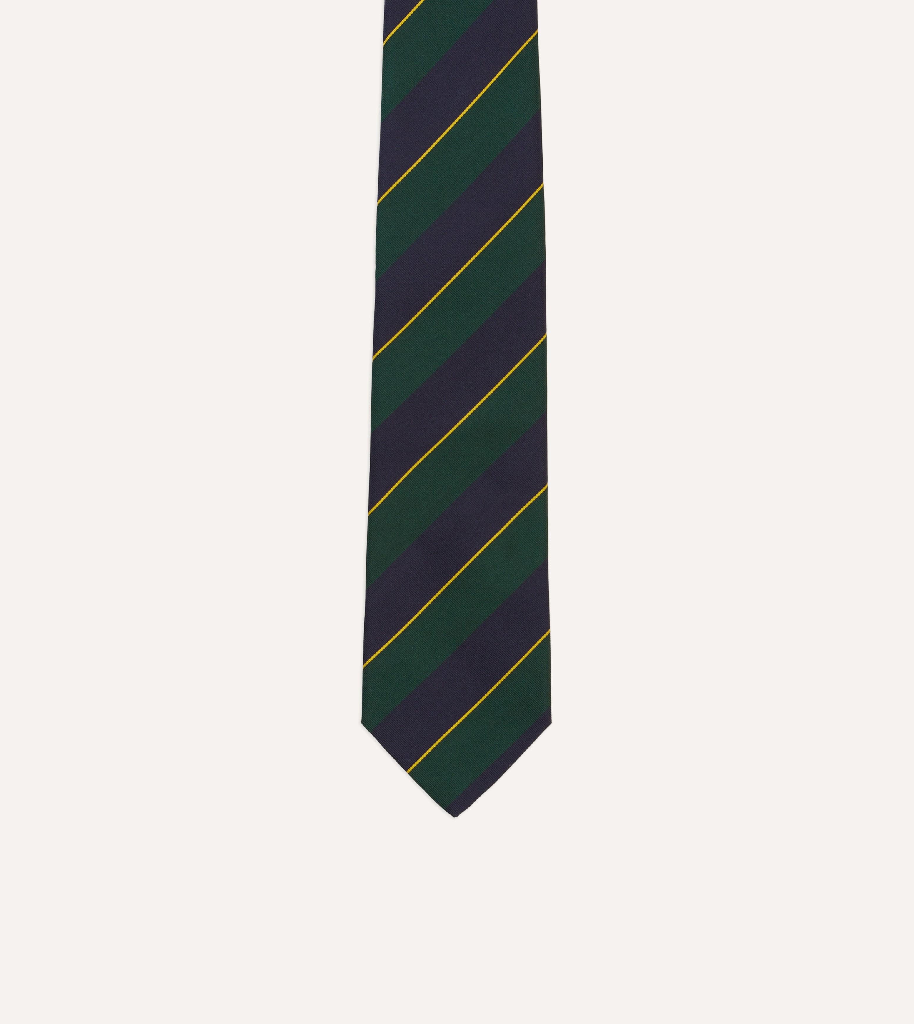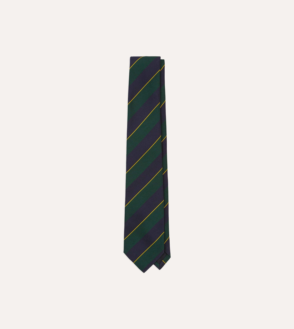 Navy, Green and Yellow Fine Stripe Mogador Silk Tipped Tie