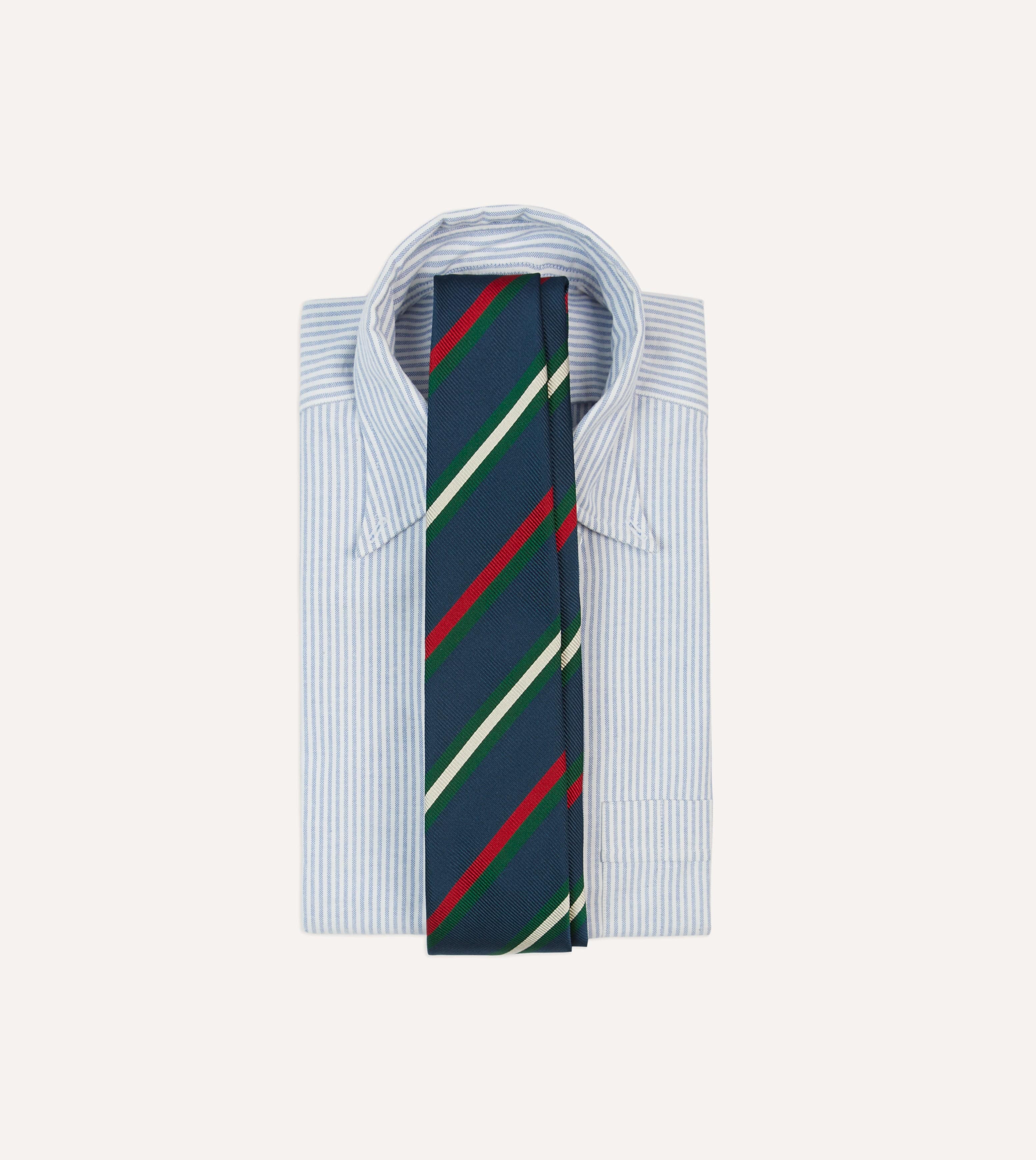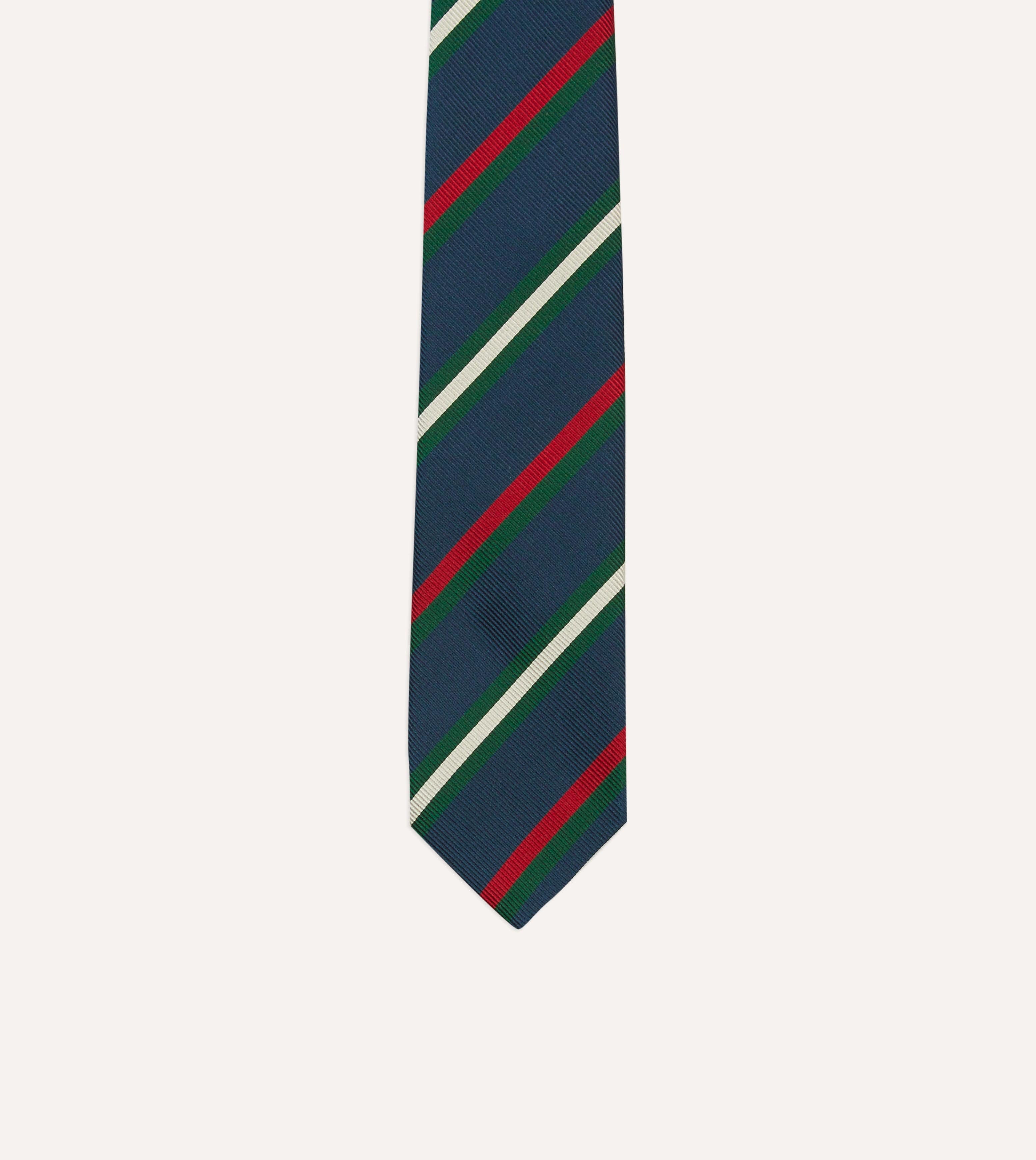 Navy, Green, Red and White Stripe Repp Silk Tipped Tie