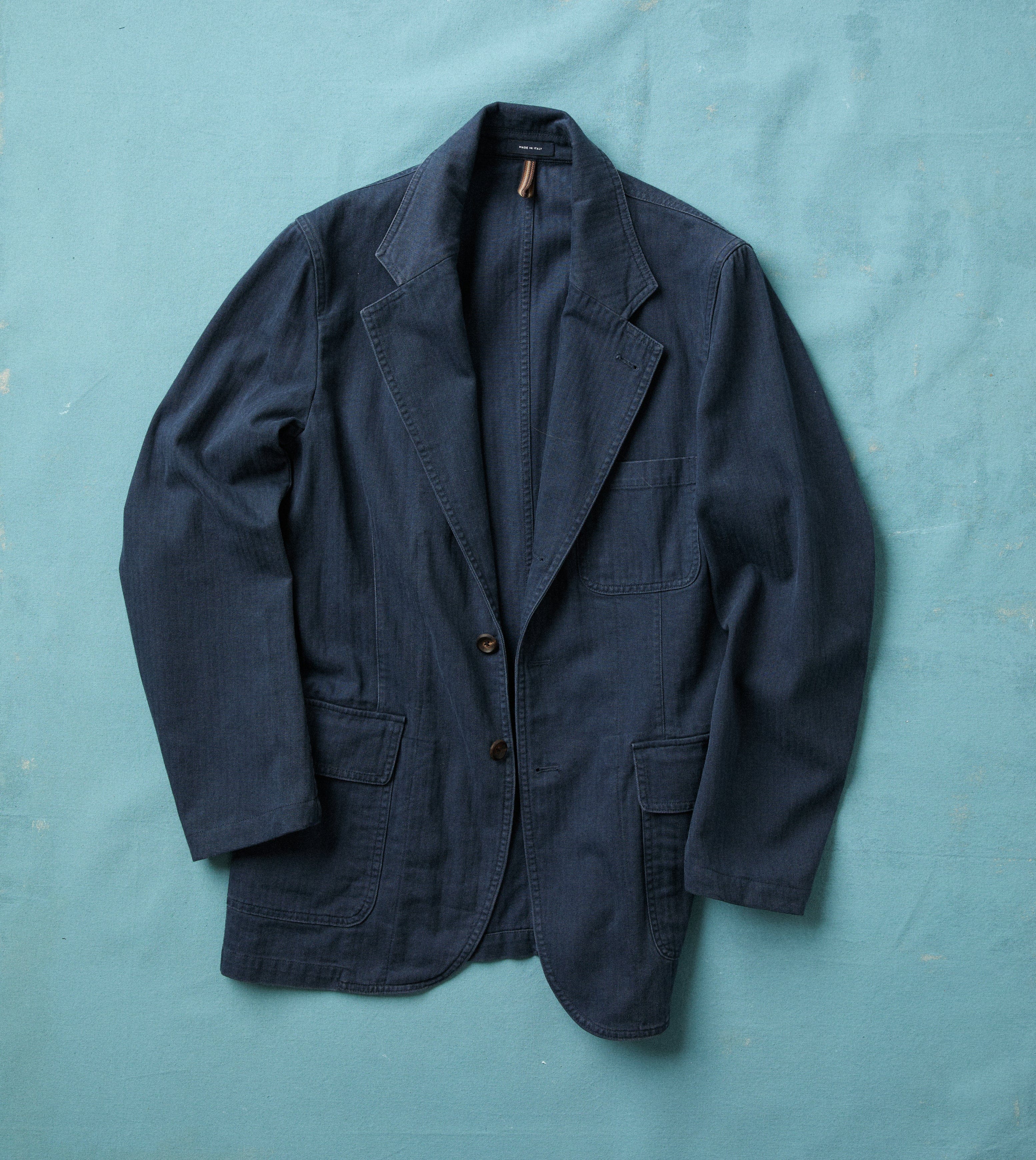 Cut from a 8.8oz herringbone twill from Japan based on a 1940s US military cloth. Pair it with the matching trousers for an informal take on the classic two-piece suit.