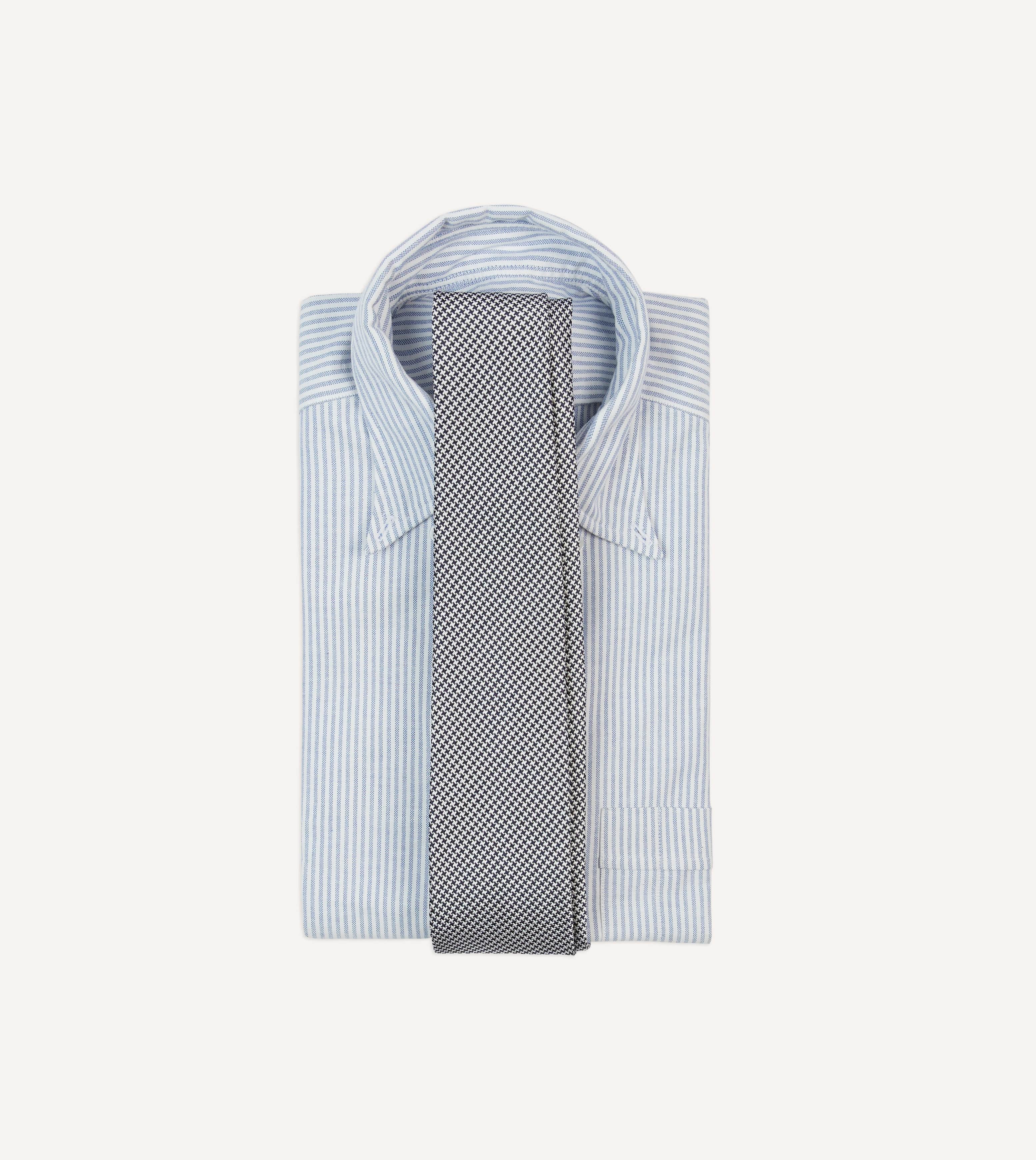 Navy Houndstooth Mogador Silk Tipped Tie