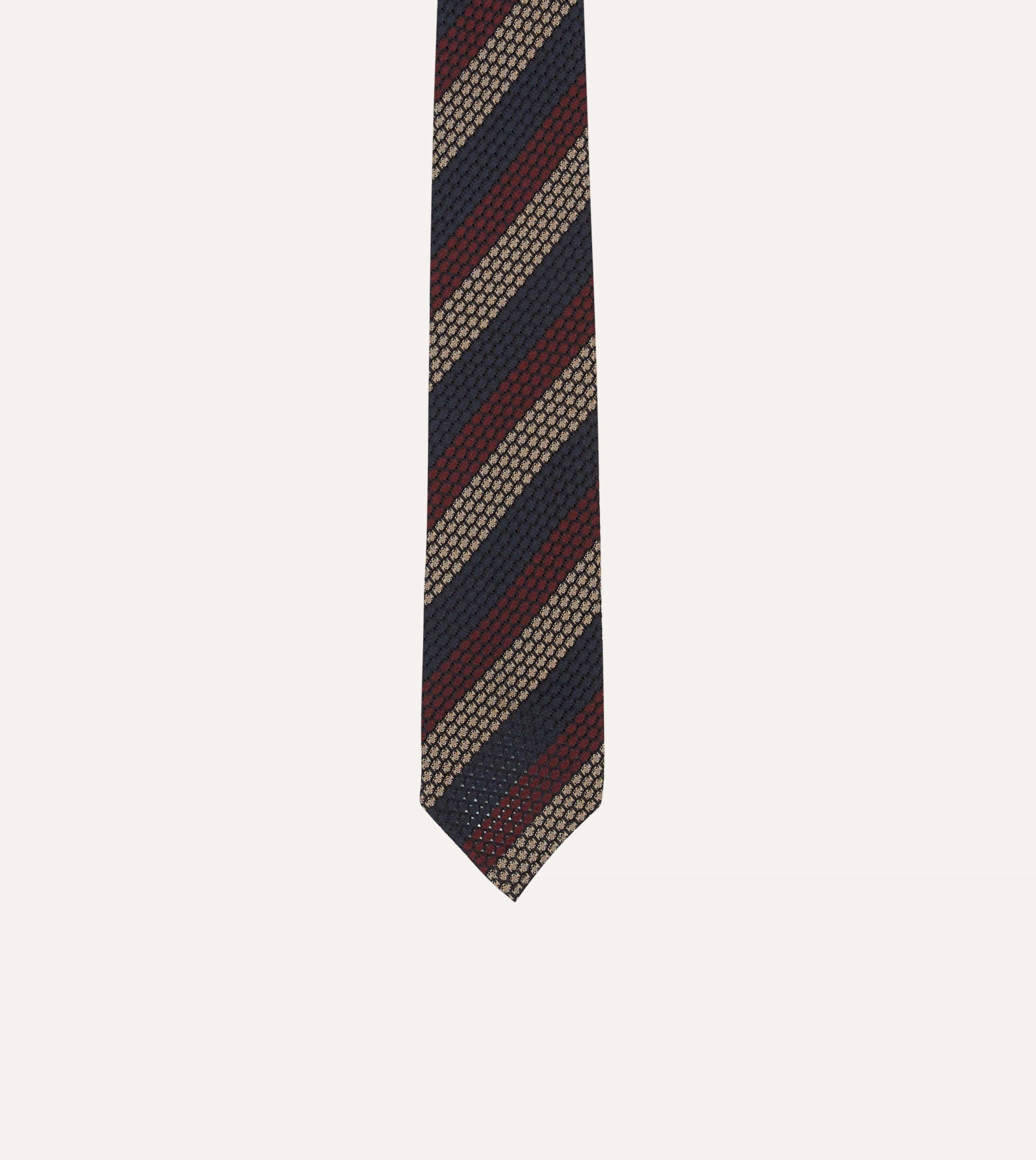 Navy, Red and Gold Block Stripe Hand Rolled Silk Grenadine Tie