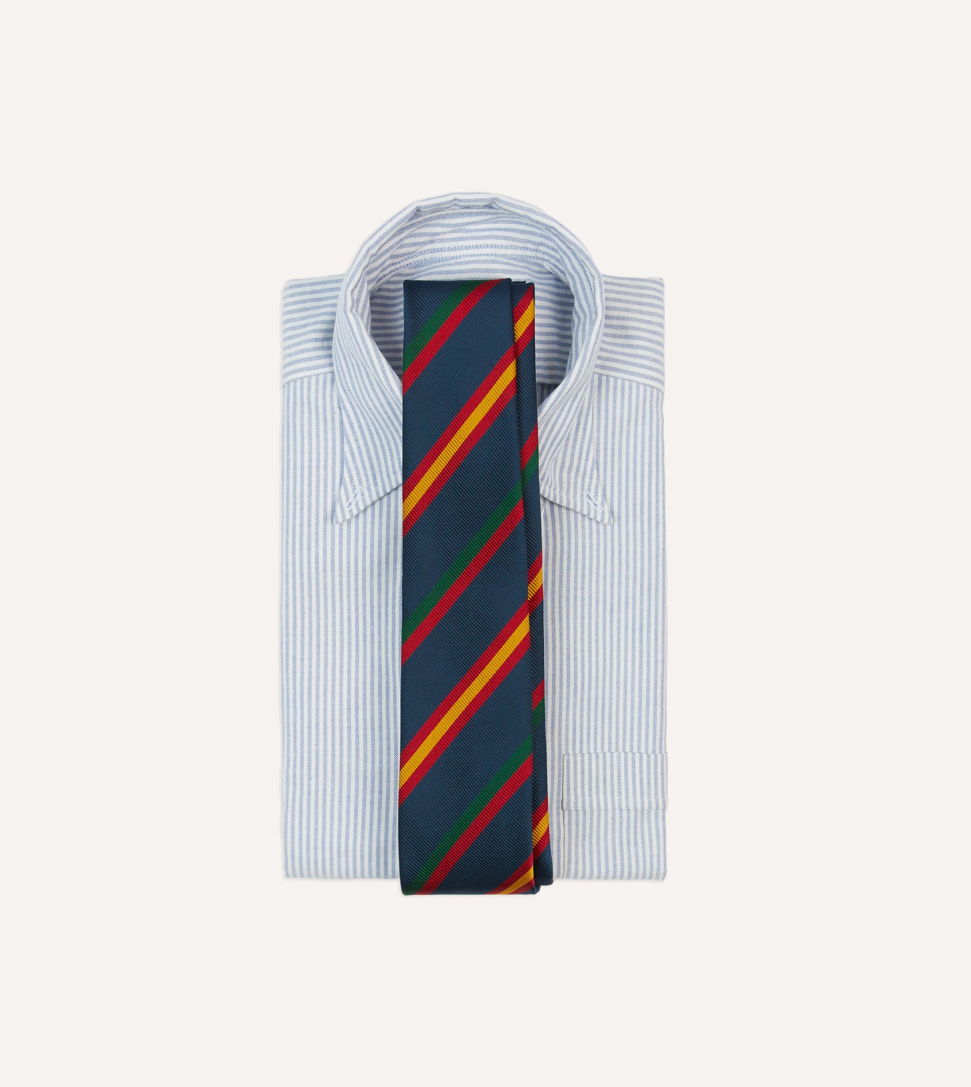 Navy, Red and Yellow Stripe Repp Silk Tipped Tie
