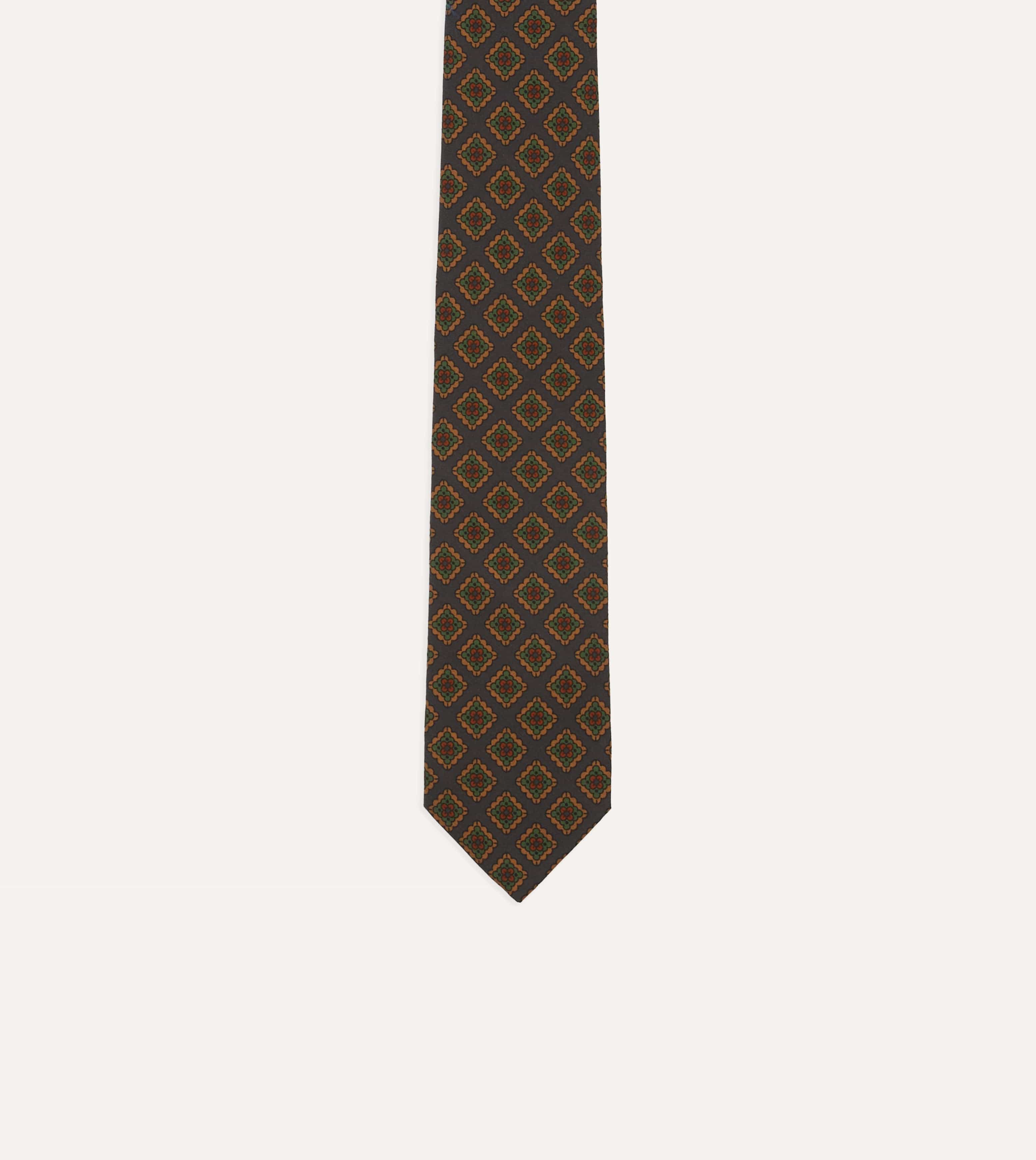 An ornate medallion design simply exudes elegance, particularly when printed on a tactile blend of wool and silk, hand rolled by our dedicated tiemakers in the heart of east London.