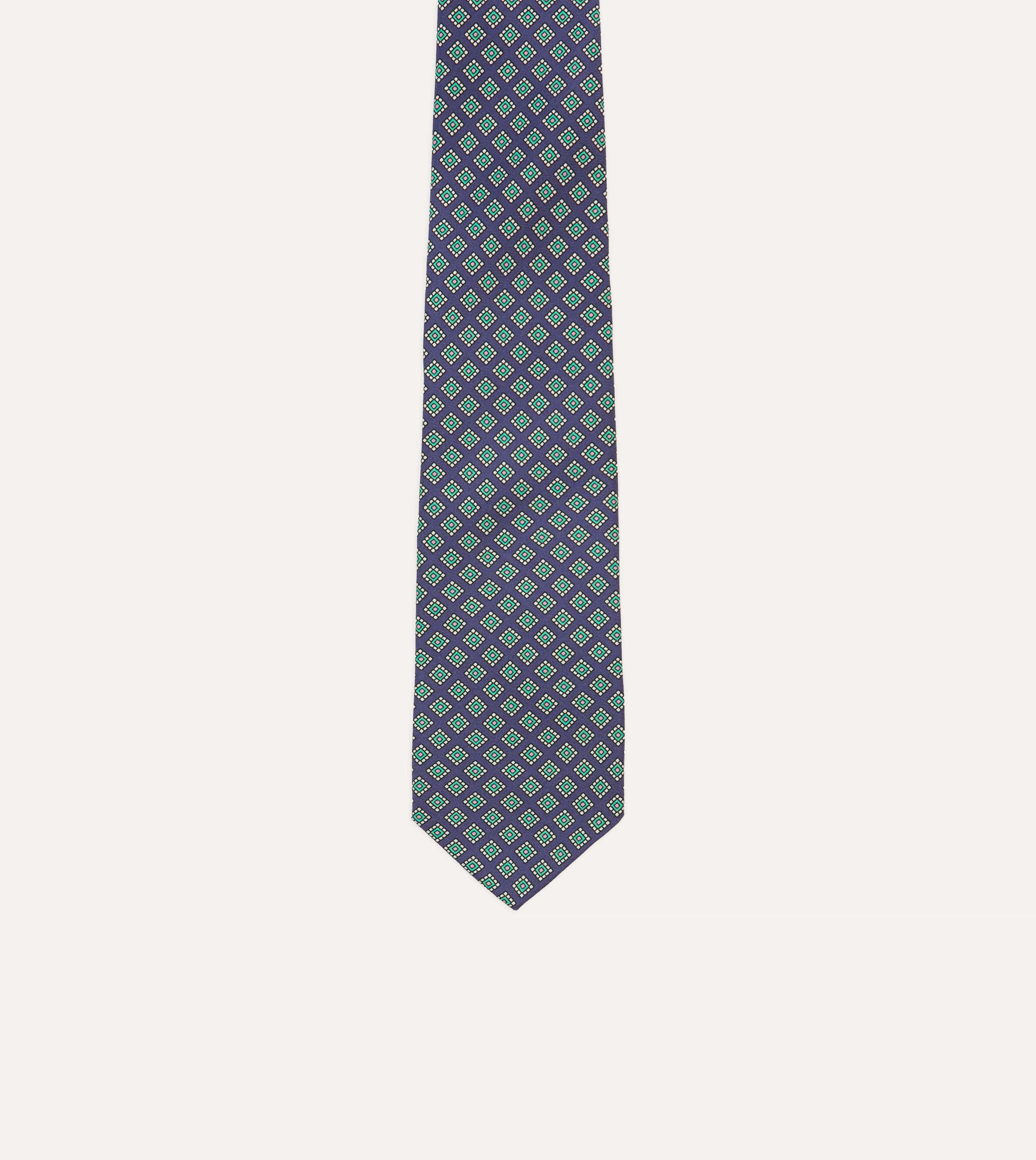 An ornate square motif simply exudes elegance, particularly when printed on pure silk and hand rolled by our dedicated tiemakers in the heart of east London.