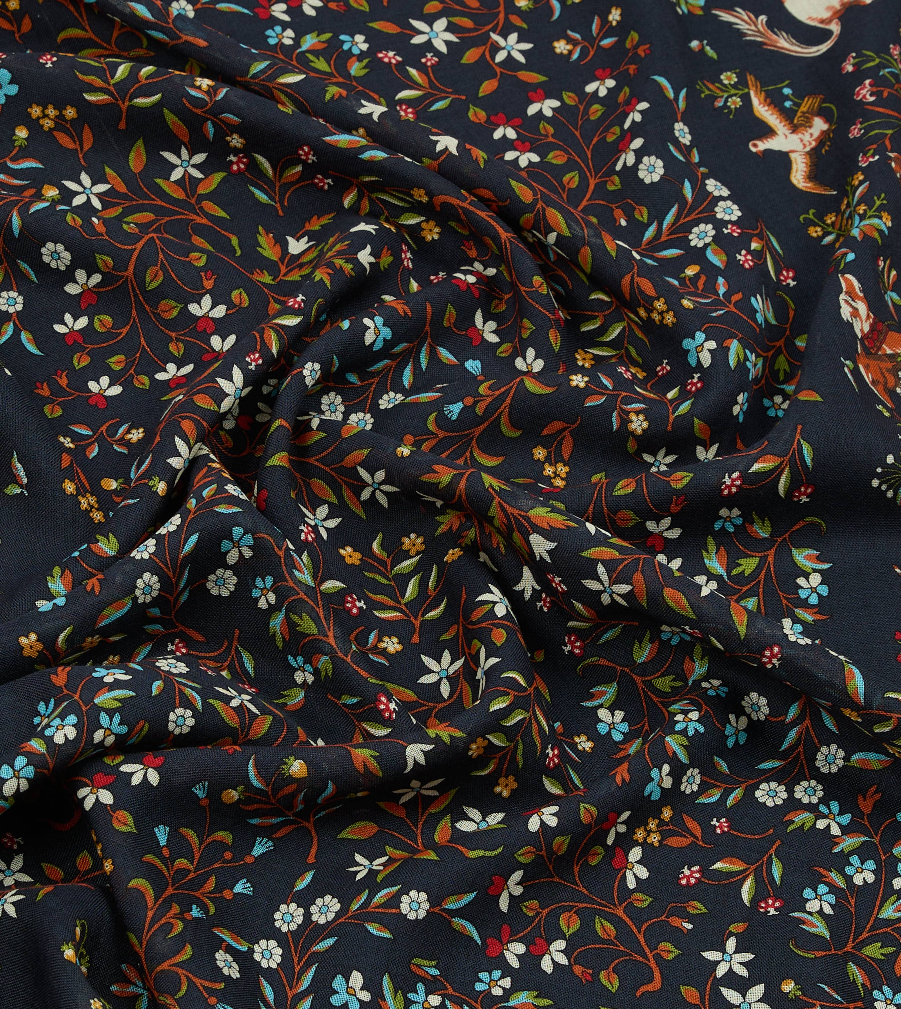 Taken from our extensive design archive, this unicorn garden motif has been vividly applied to a blend of pure wool and silk for an elegant and airy addition to your arsenal.