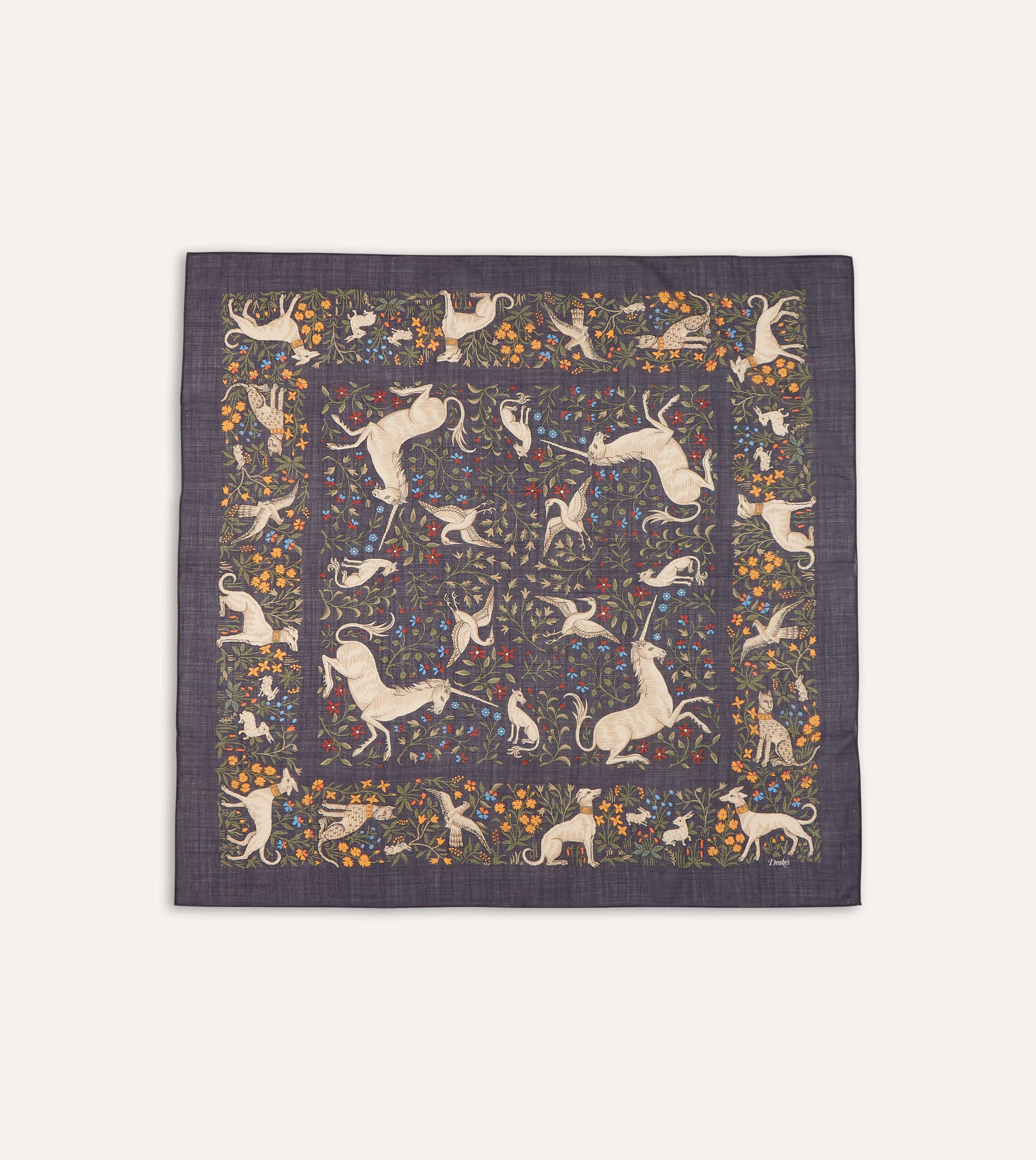 Taken from our extensive design archive, this unicorn motif has been vividly applied to a blend of pure wool and silk for a elegant and comfortable defence from a cold snap.