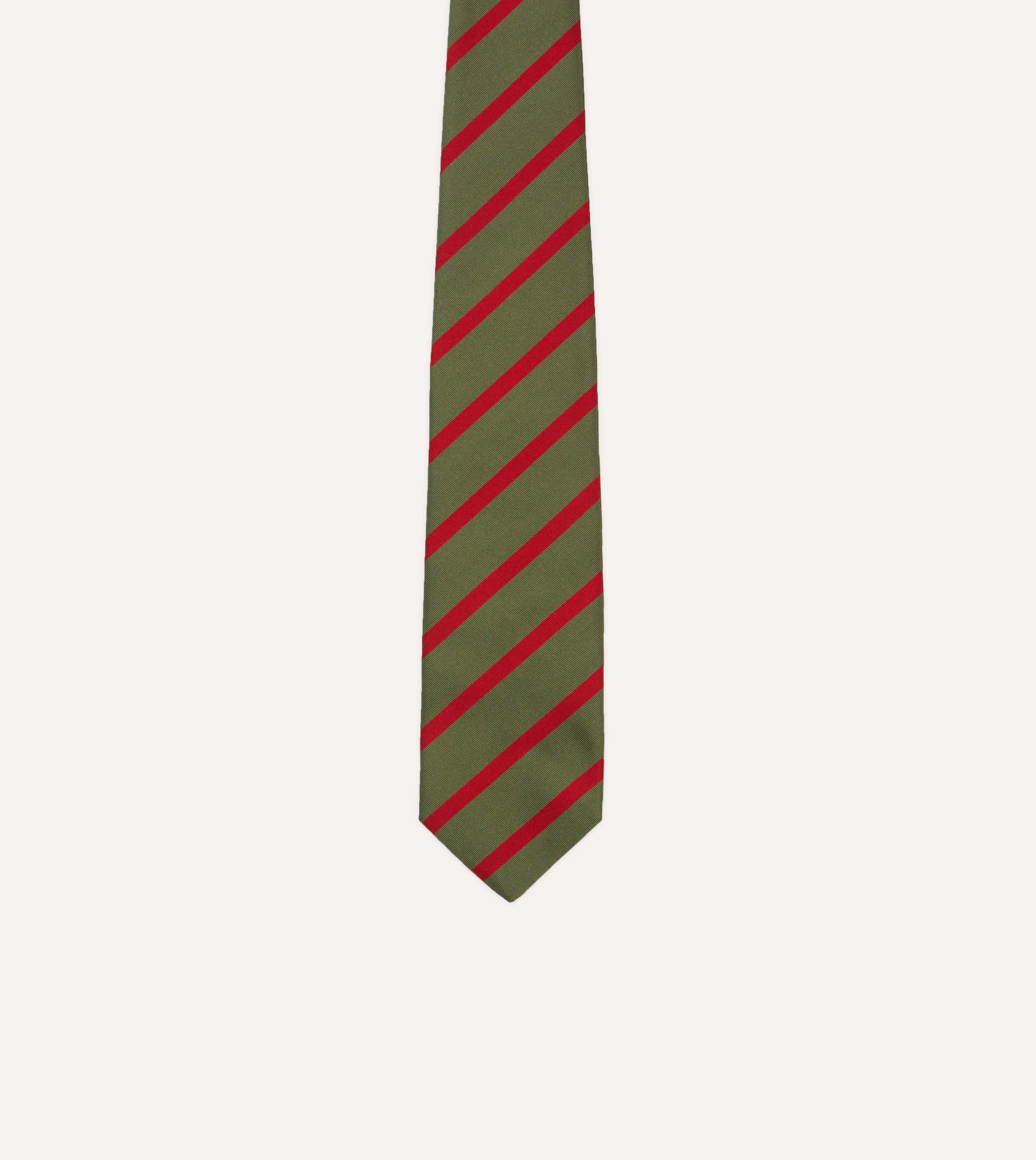 Olive and Red Bar Stripe Mogador Silk Tipped Tie