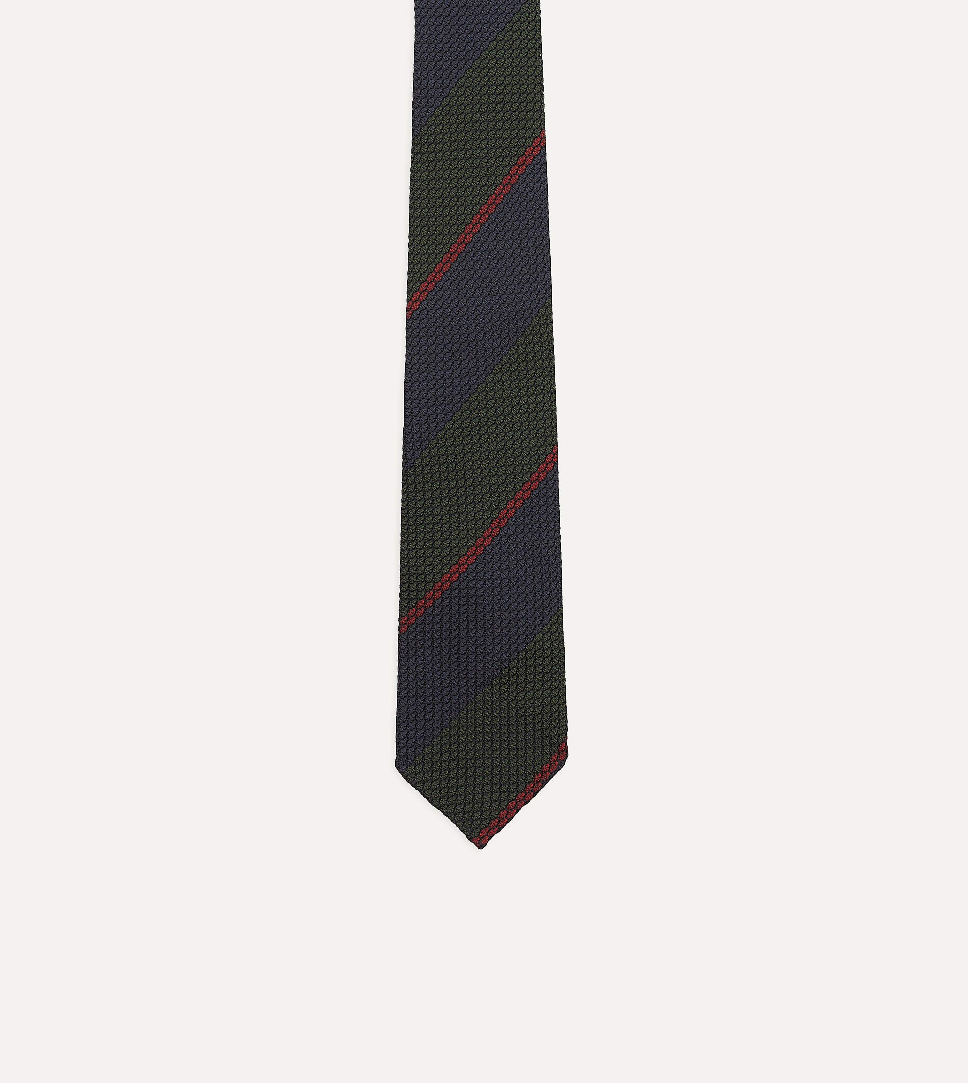 Olive and Red Block Stripe Hand Rolled Silk Grenadine Tie
