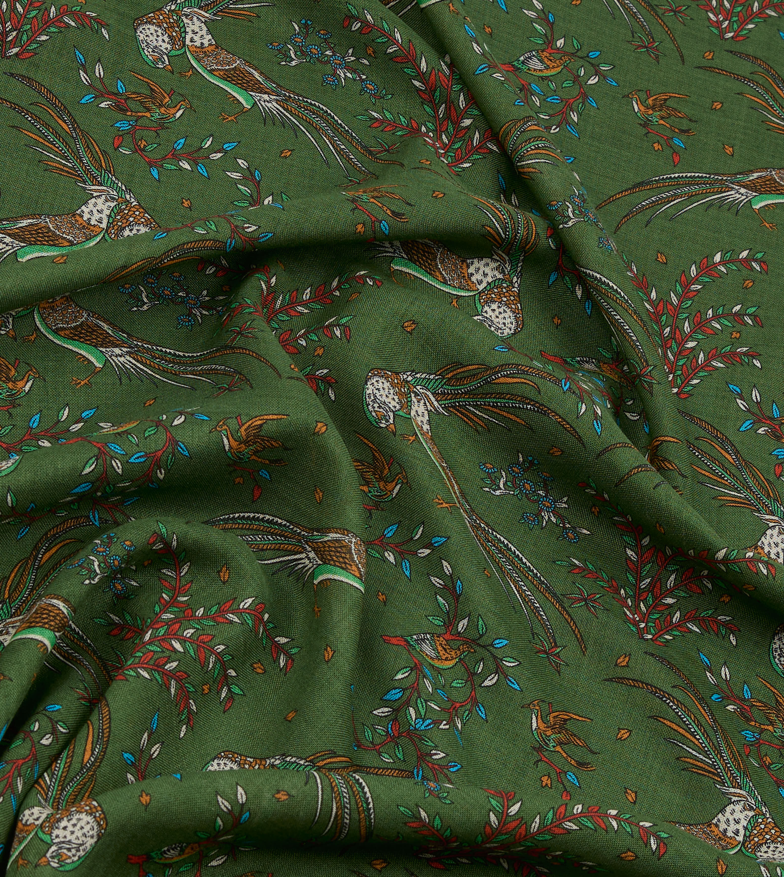 Taken from our extensive design archive, this birds of paradise motif has been vividly applied to a blend of pure wool and silk for an elegant and airy addition to your arsenal.