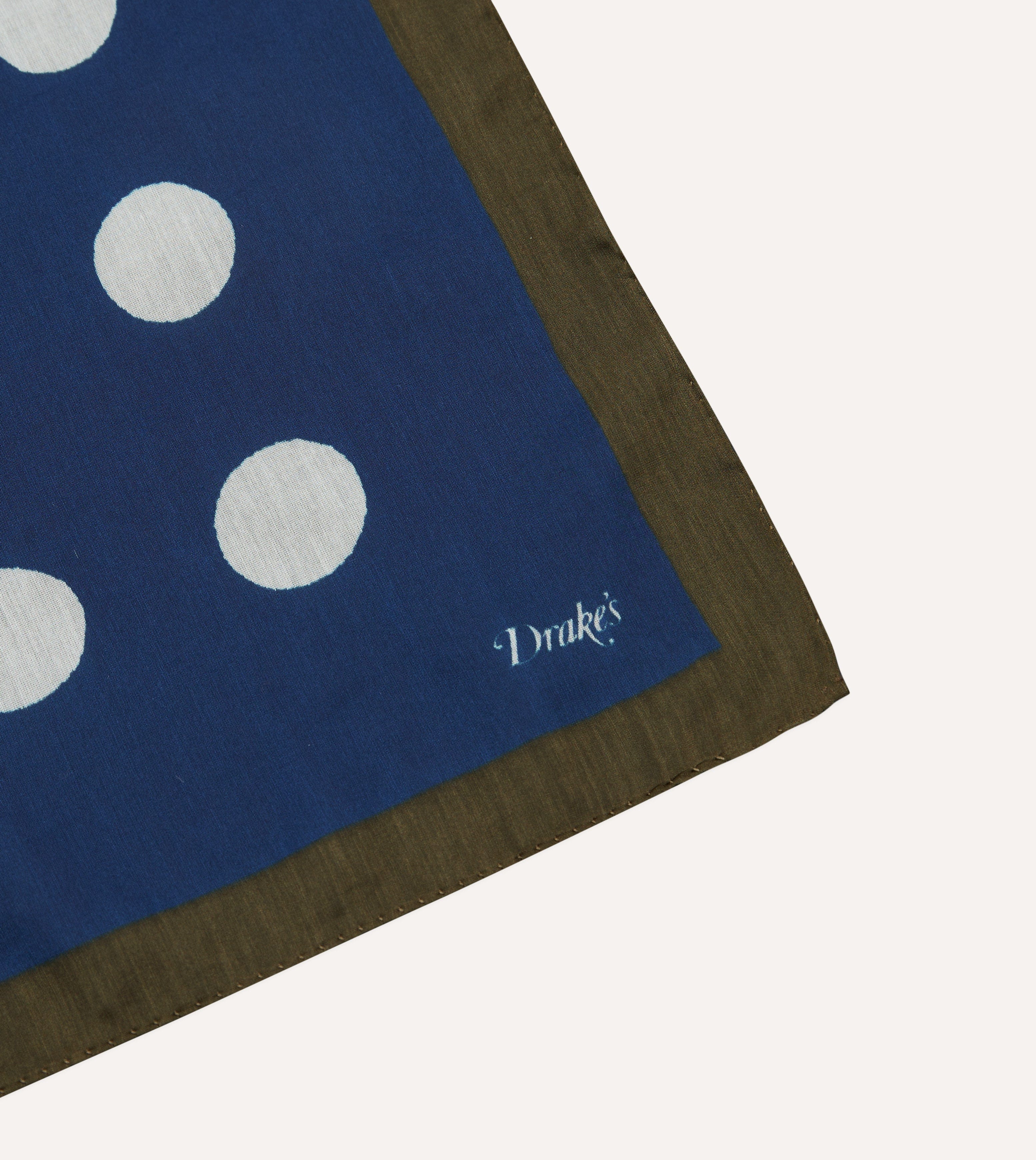 Olive, Navy and Ecru Large Spots Print Cotton-Silk Pocket Square