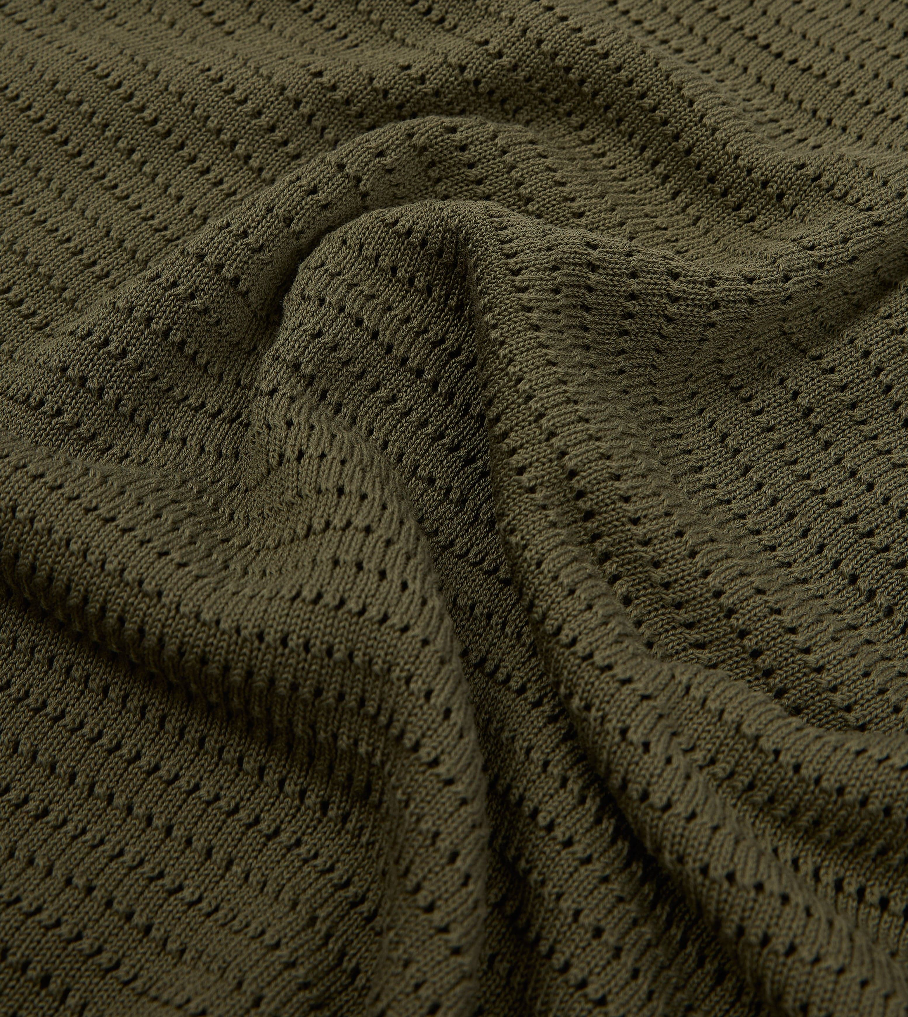 Olive Waffle Knit Cotton Short-Sleeve Polo Shirt