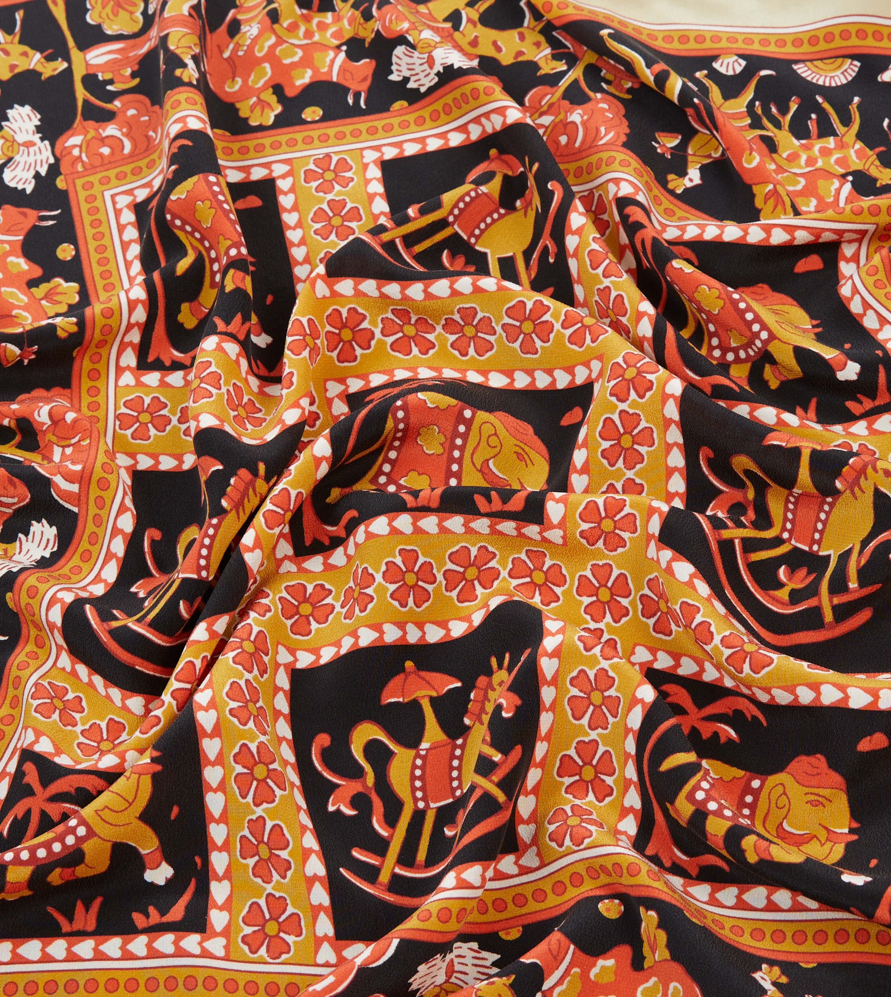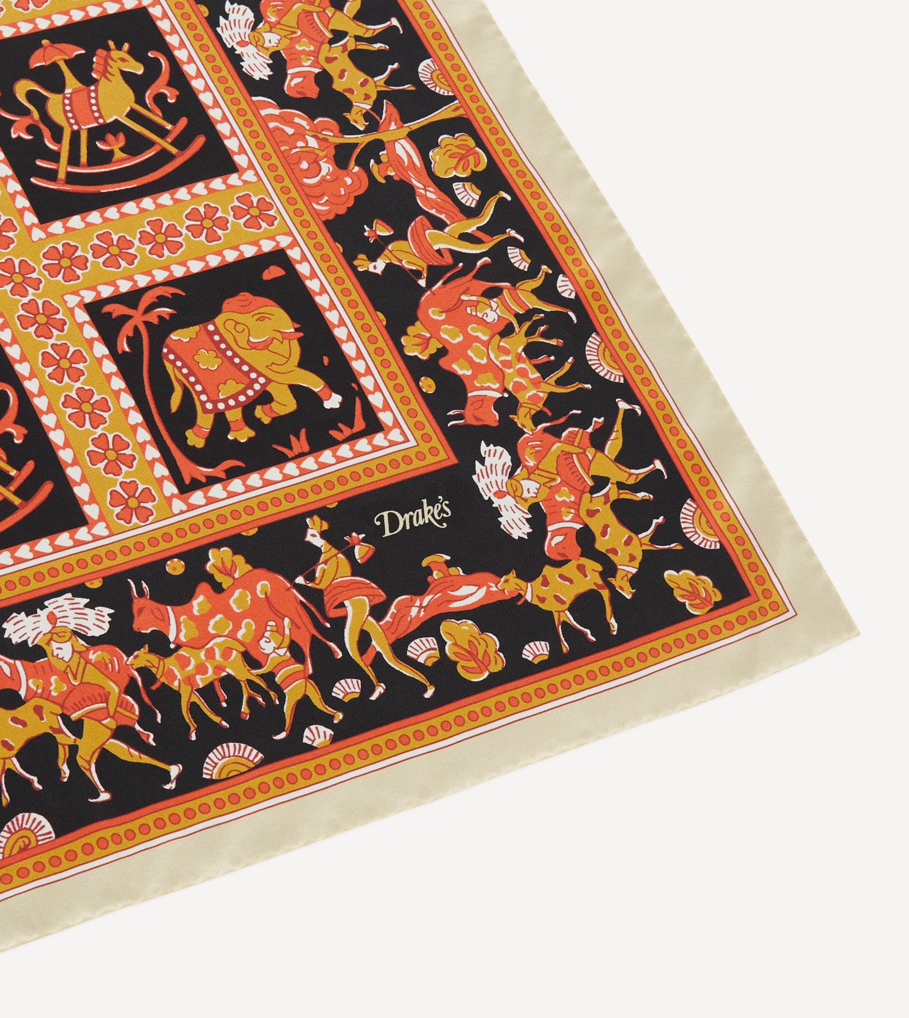 Taken from our extensive design archive, this elephant motif has been vividly applied to pure silk for a elegant and comfortable defence from a cold snap.