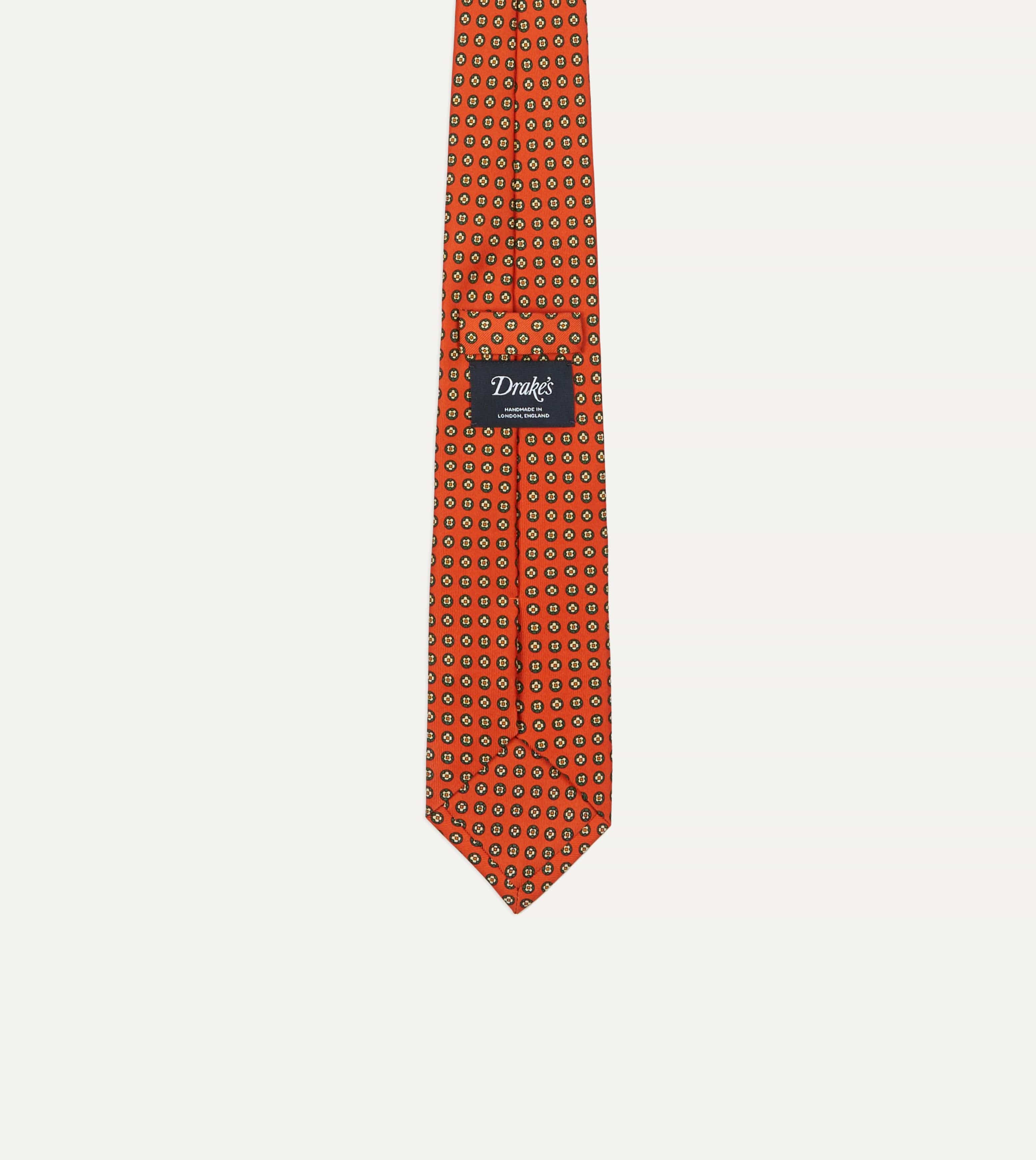 A jaunty geometric pattern creates a dynamic visual effect with this exquisite silk tie, handmade in our East London factory.