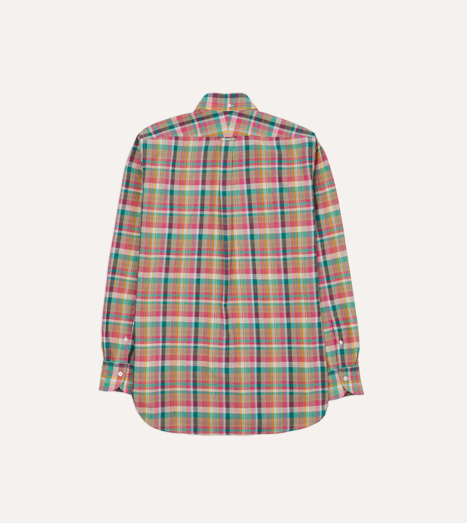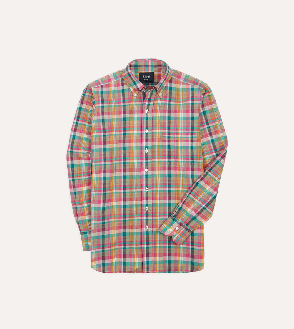 Pink and Green Madras Check Cotton Button-Down Shirt