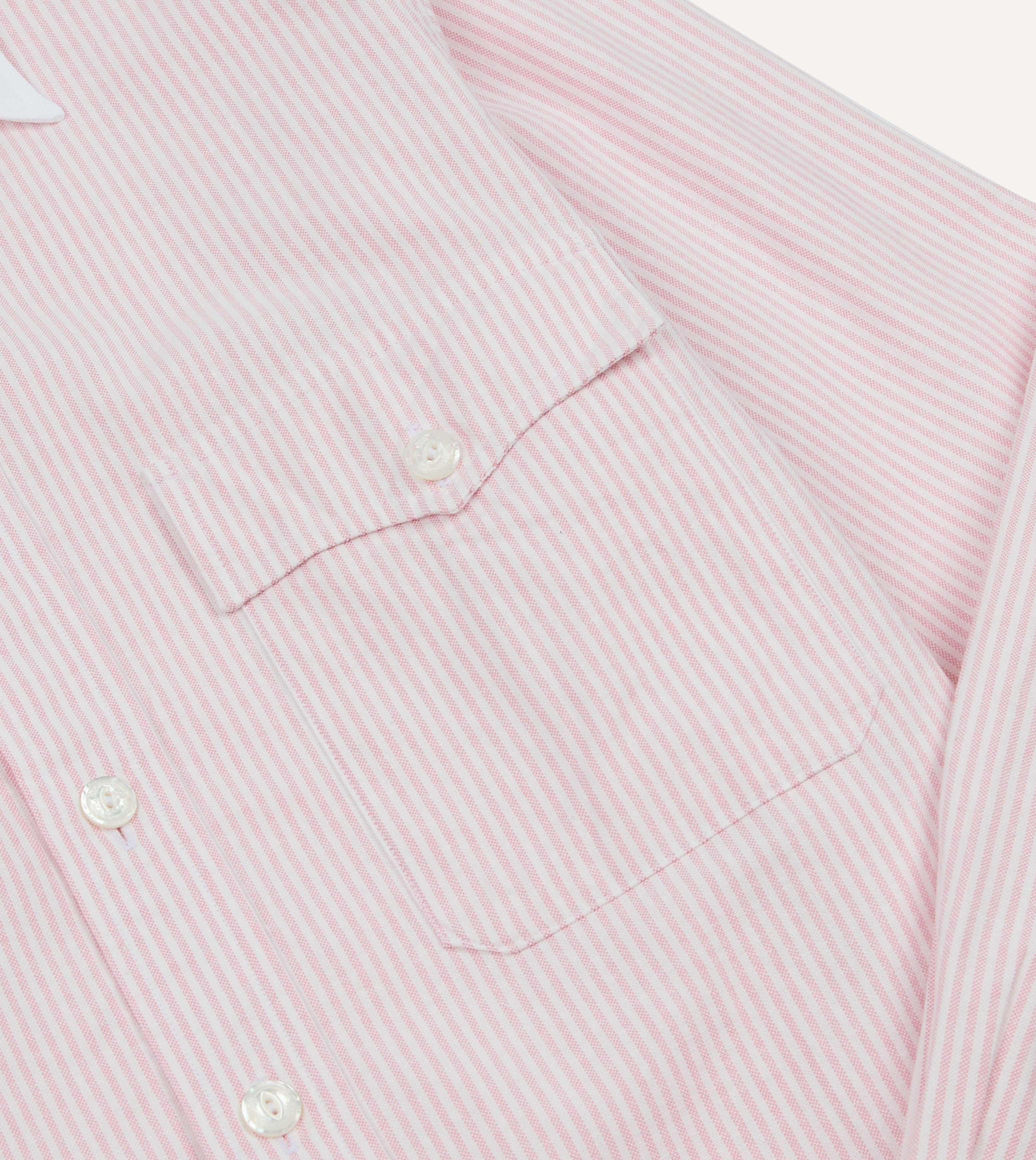 Pink Ticking Stripe Cotton Oxford Long Point Collar Western Shirt