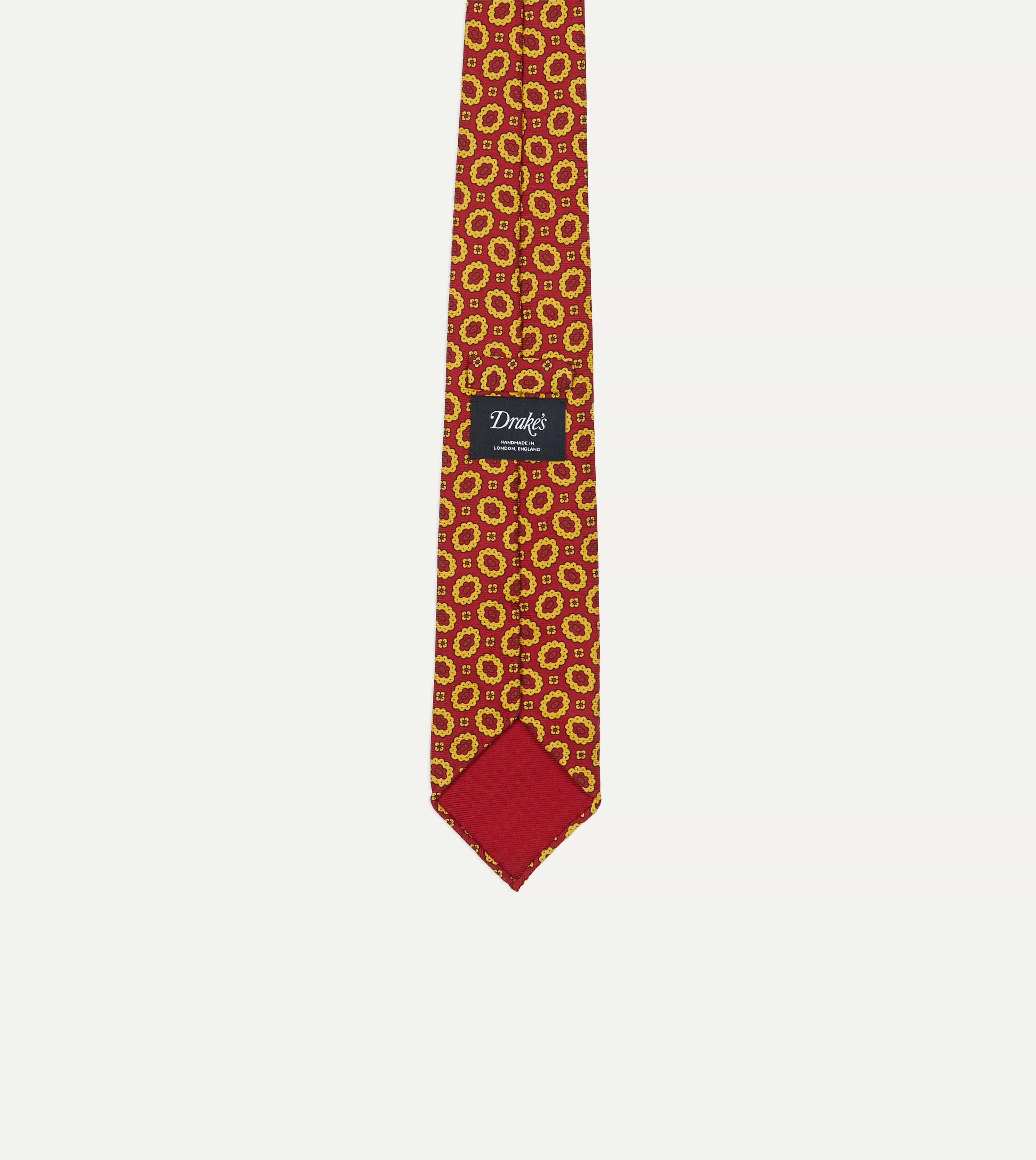 Red Flower Print 40oz Madder Silk Tipped Tie