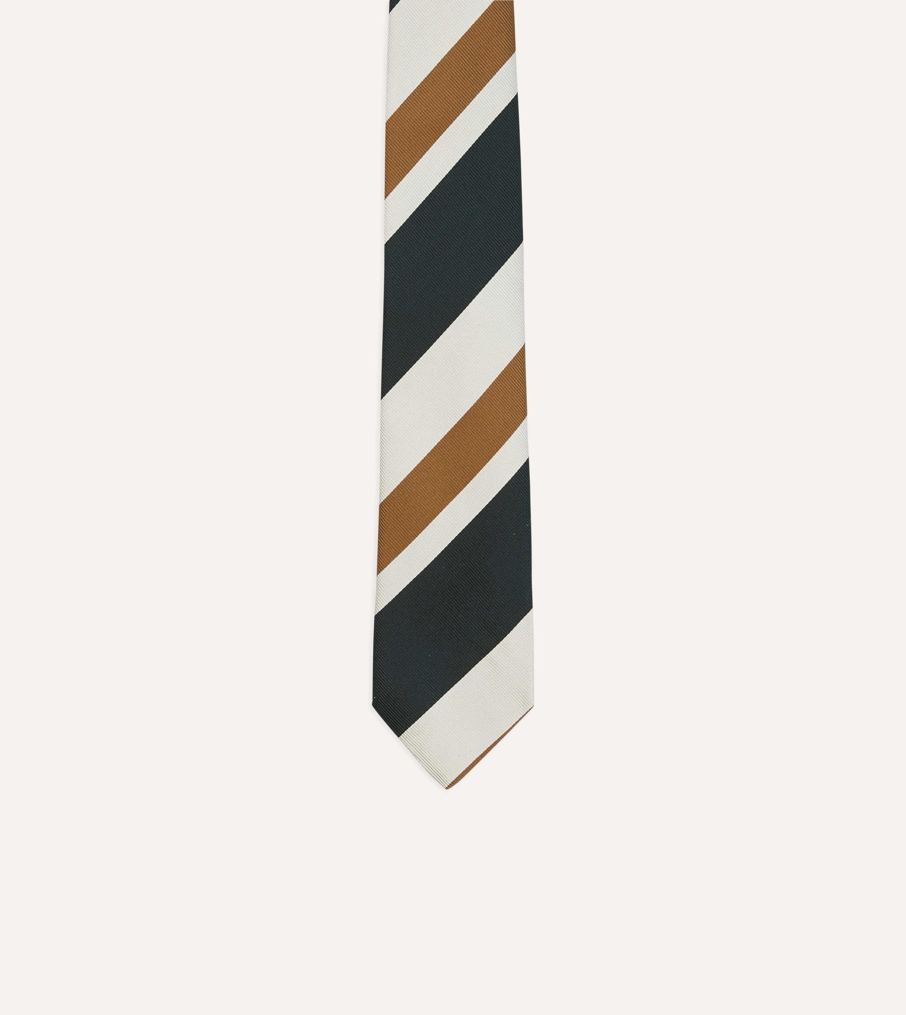 Rust and Green Broad Stripe Silk Tipped Tie
