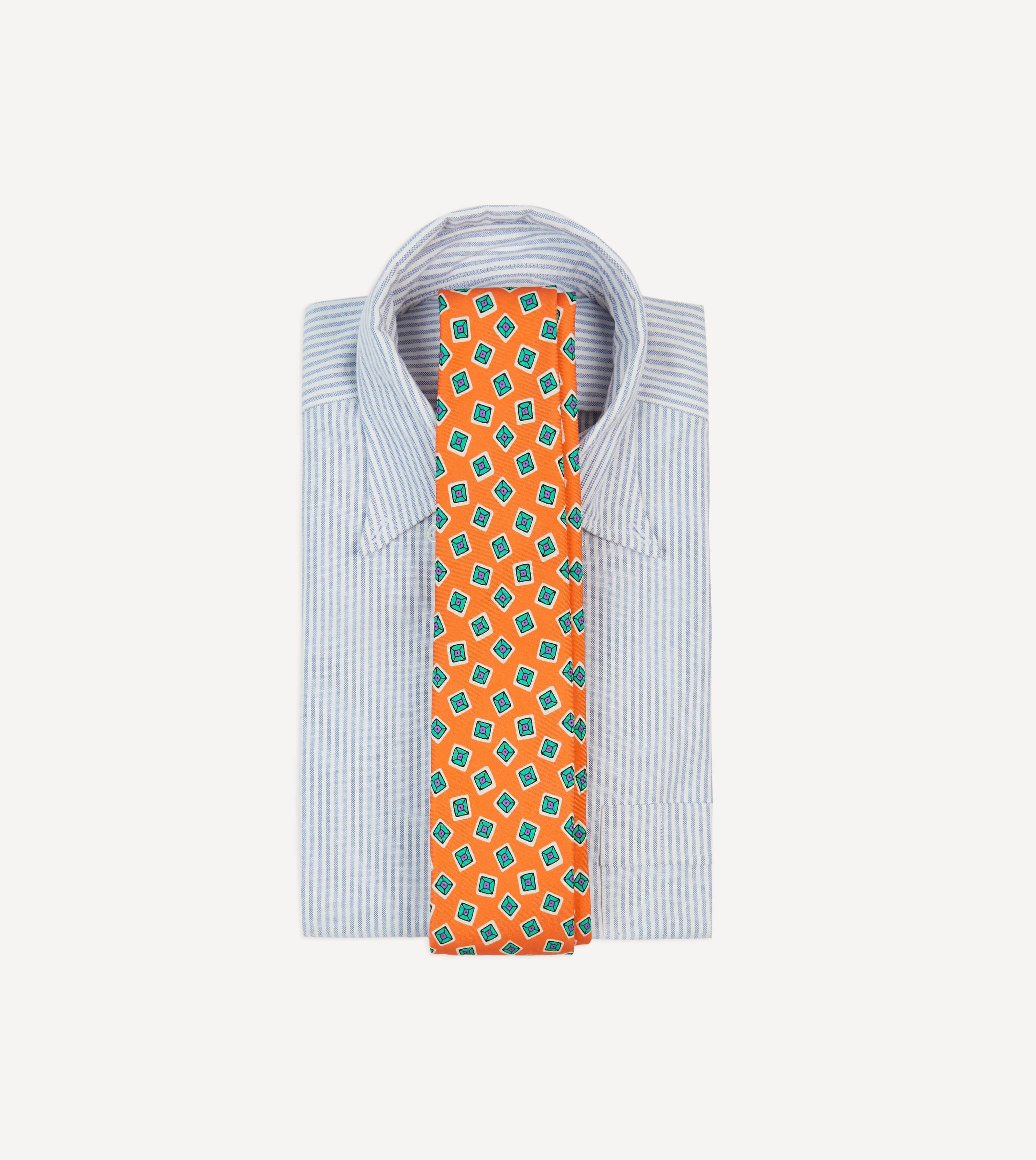 An ornate medallion design simply exudes elegance, particularly when printed on pure 38oz silk and hand rolled by our dedicated tiemakers in the heart of east London.