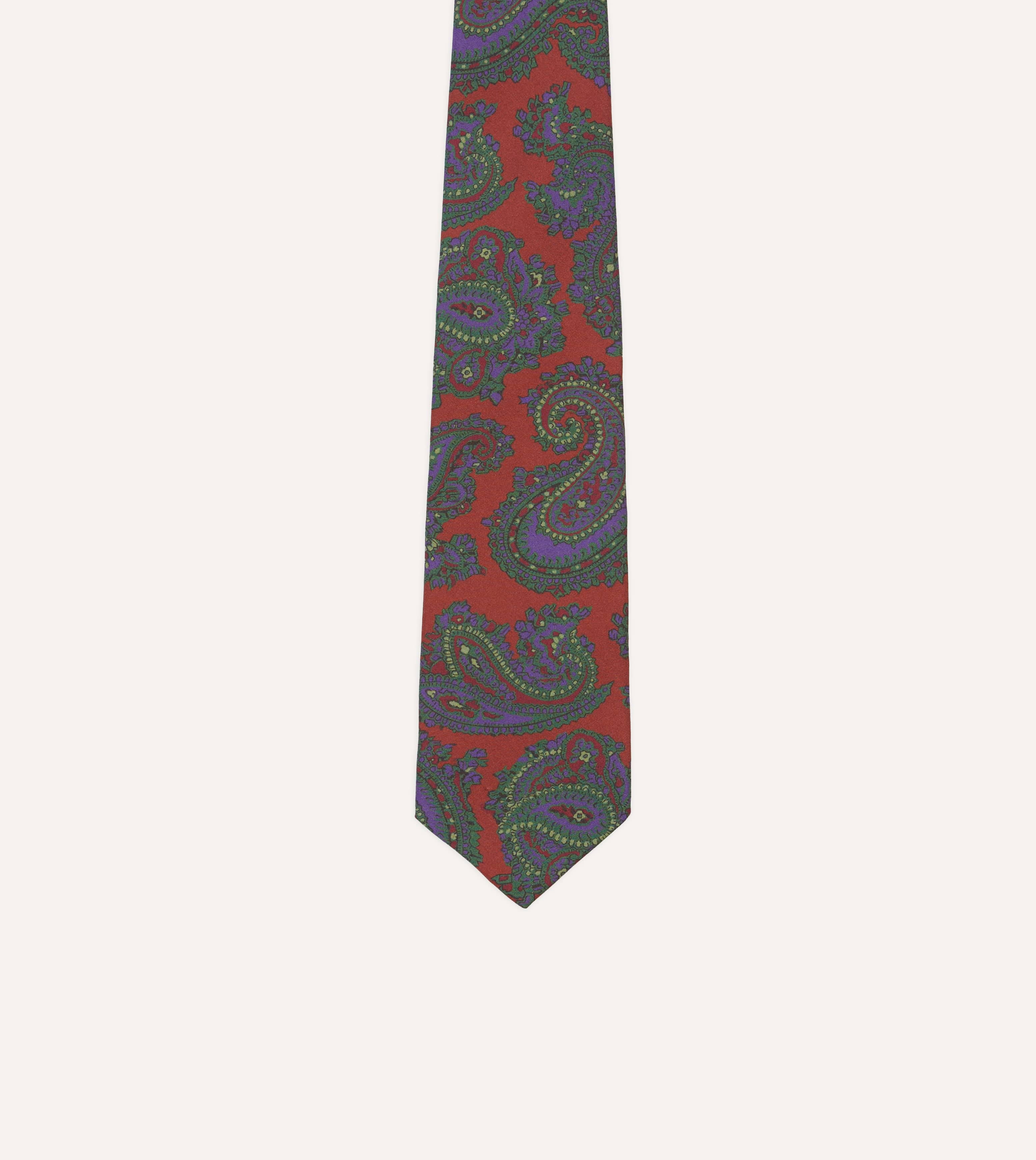 Rust Large Paisley Print Madder Silk Self-Tipped Tie
