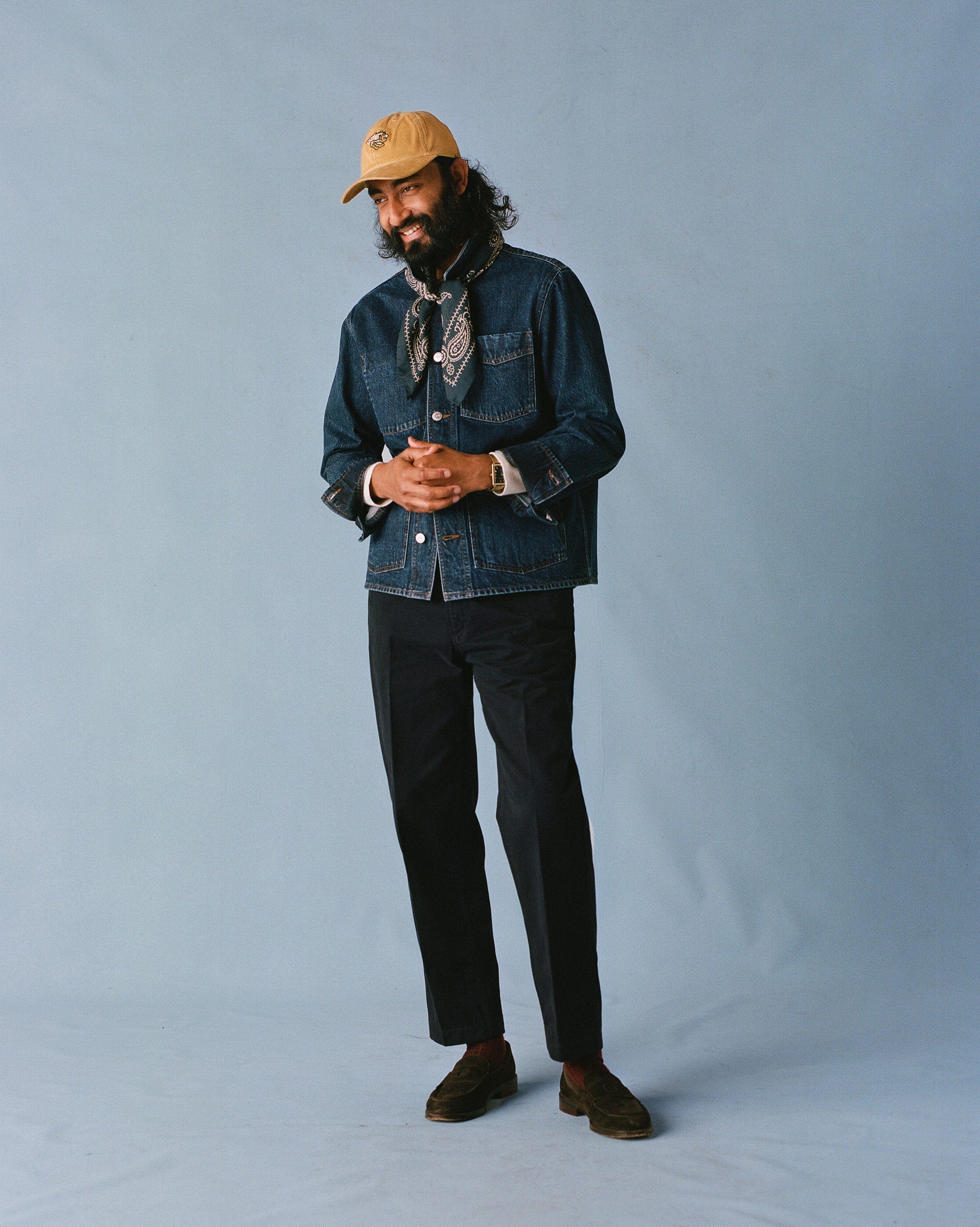 The work jacket is cut generously, with a slightly boxy shape recalling the original workwear garments worn around the turn of the century, as opposed to their slimmed-down, contemporary counterparts.