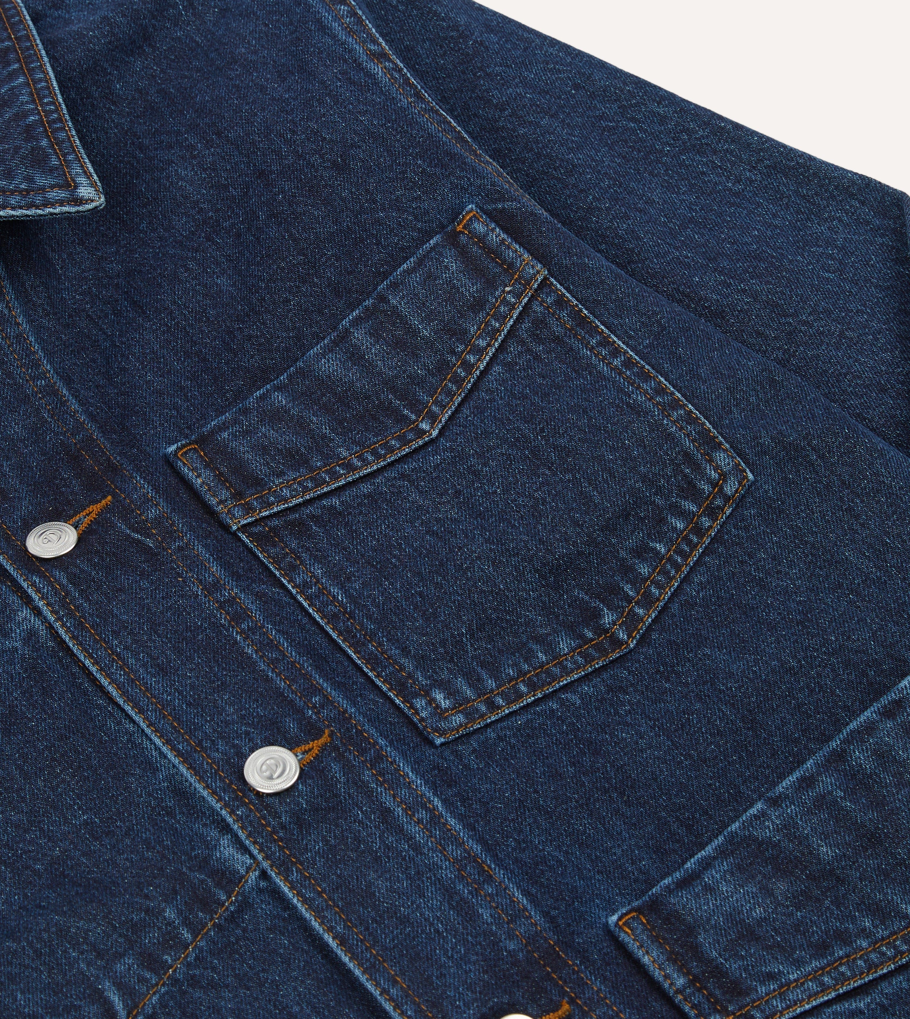 Cut from a stone washed 13oz denim, and featuring four outer patch pockets, including our signature ticket pocket, plus two on the inside, the generous cut, pared down styling and embossed copper rivet detailing stays true to the period influences of this workwear staple.