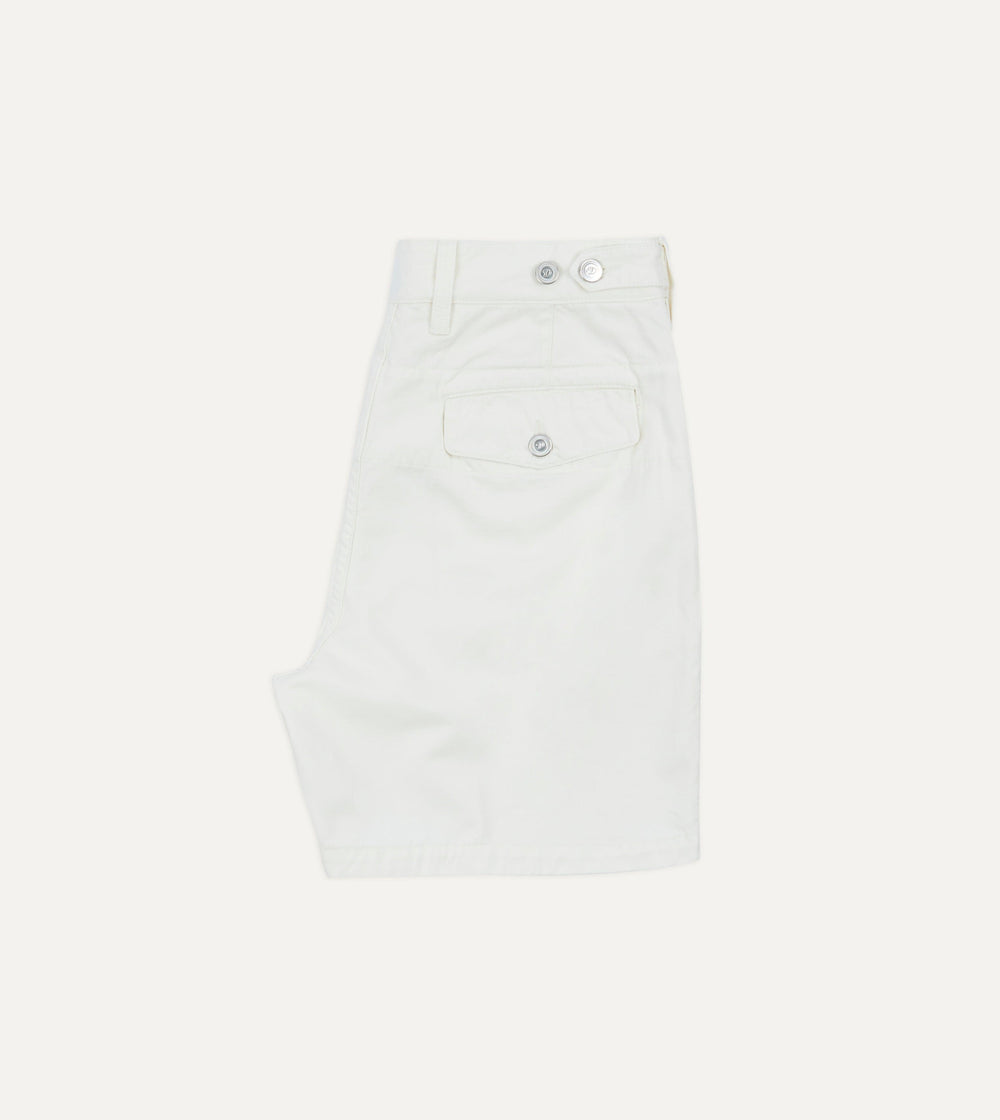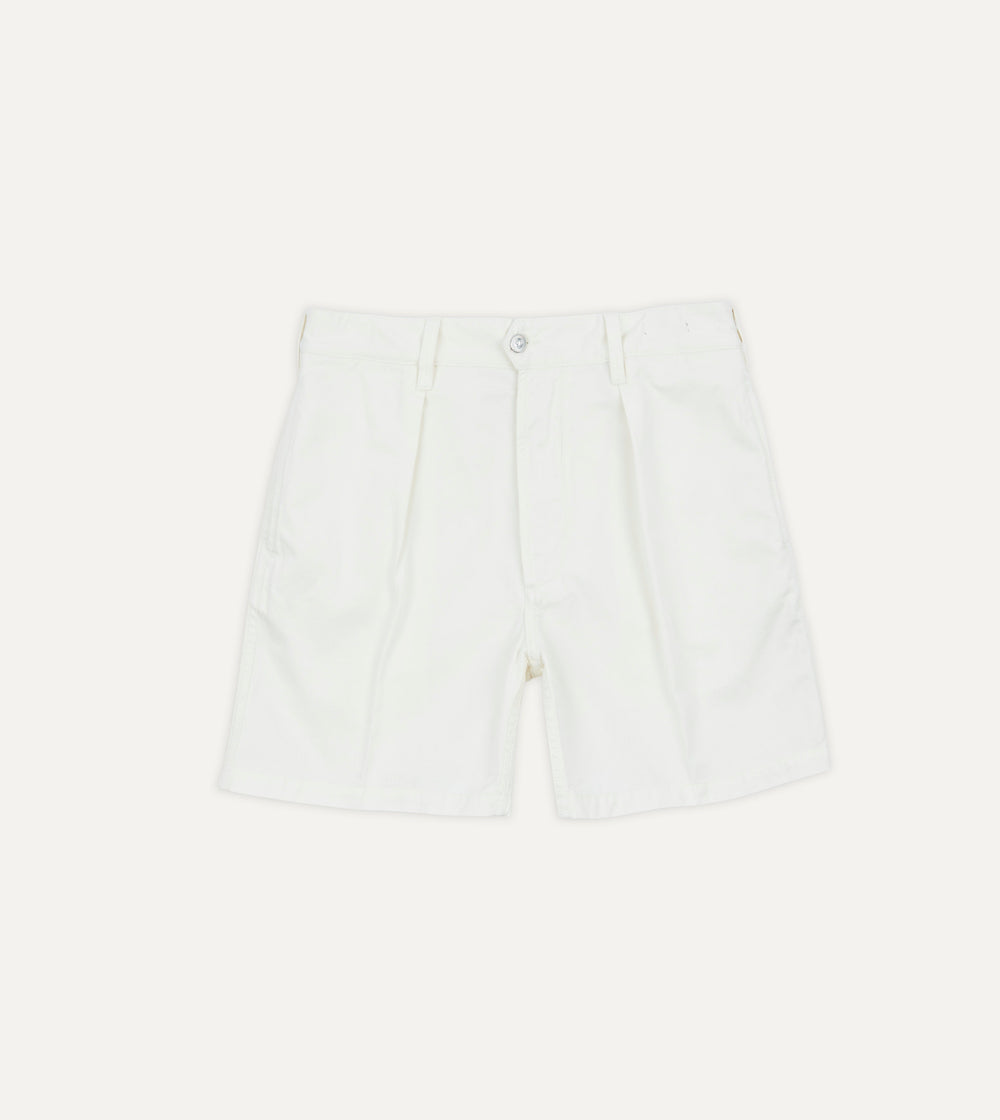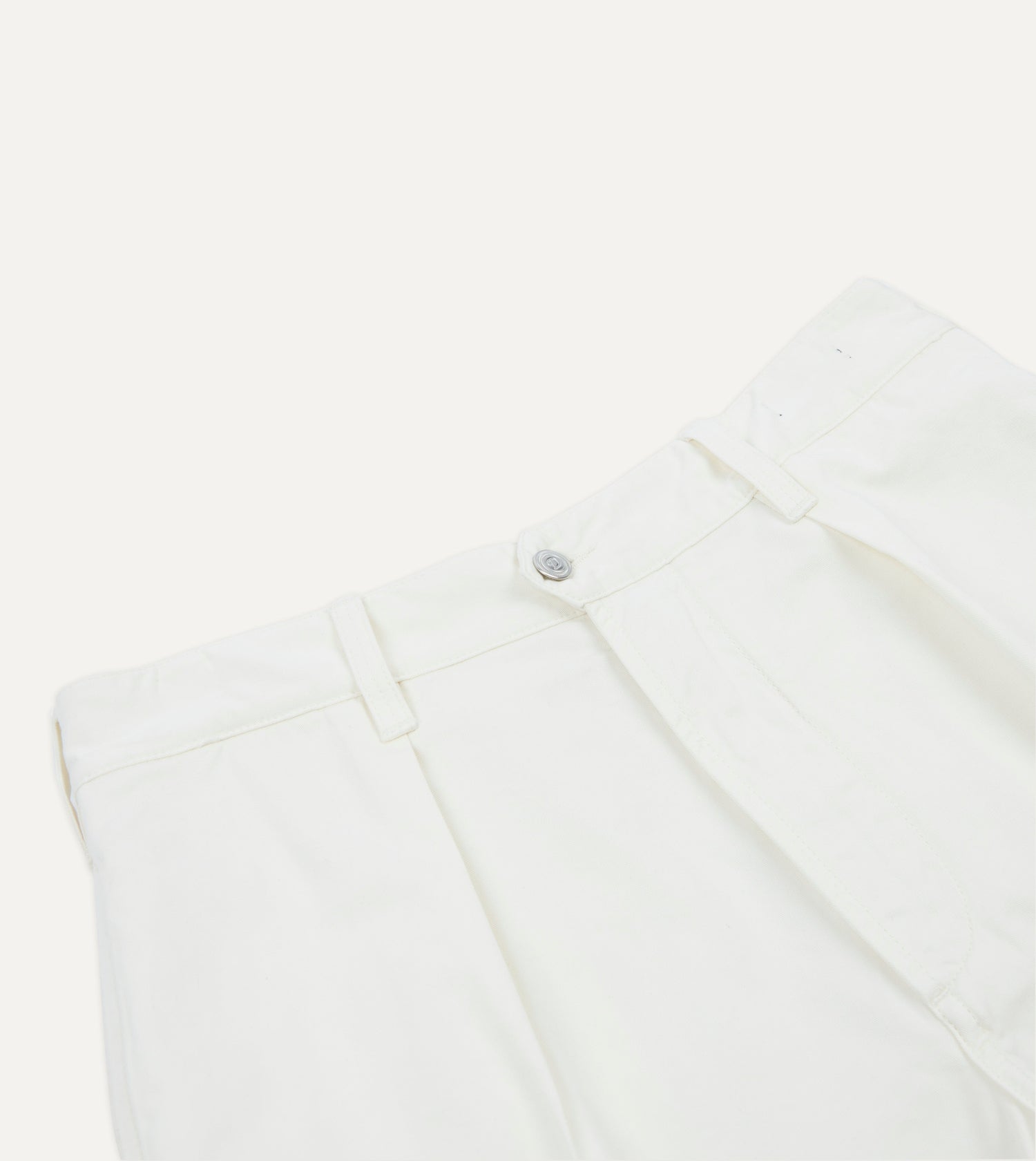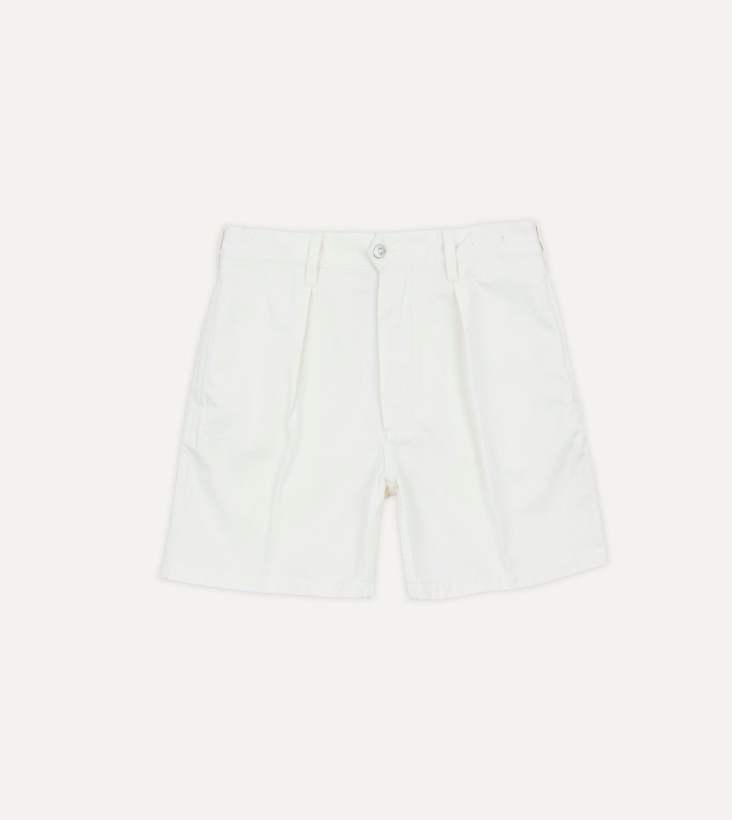 Washed Ecru Cotton Twill Single-Pleat Shorts
