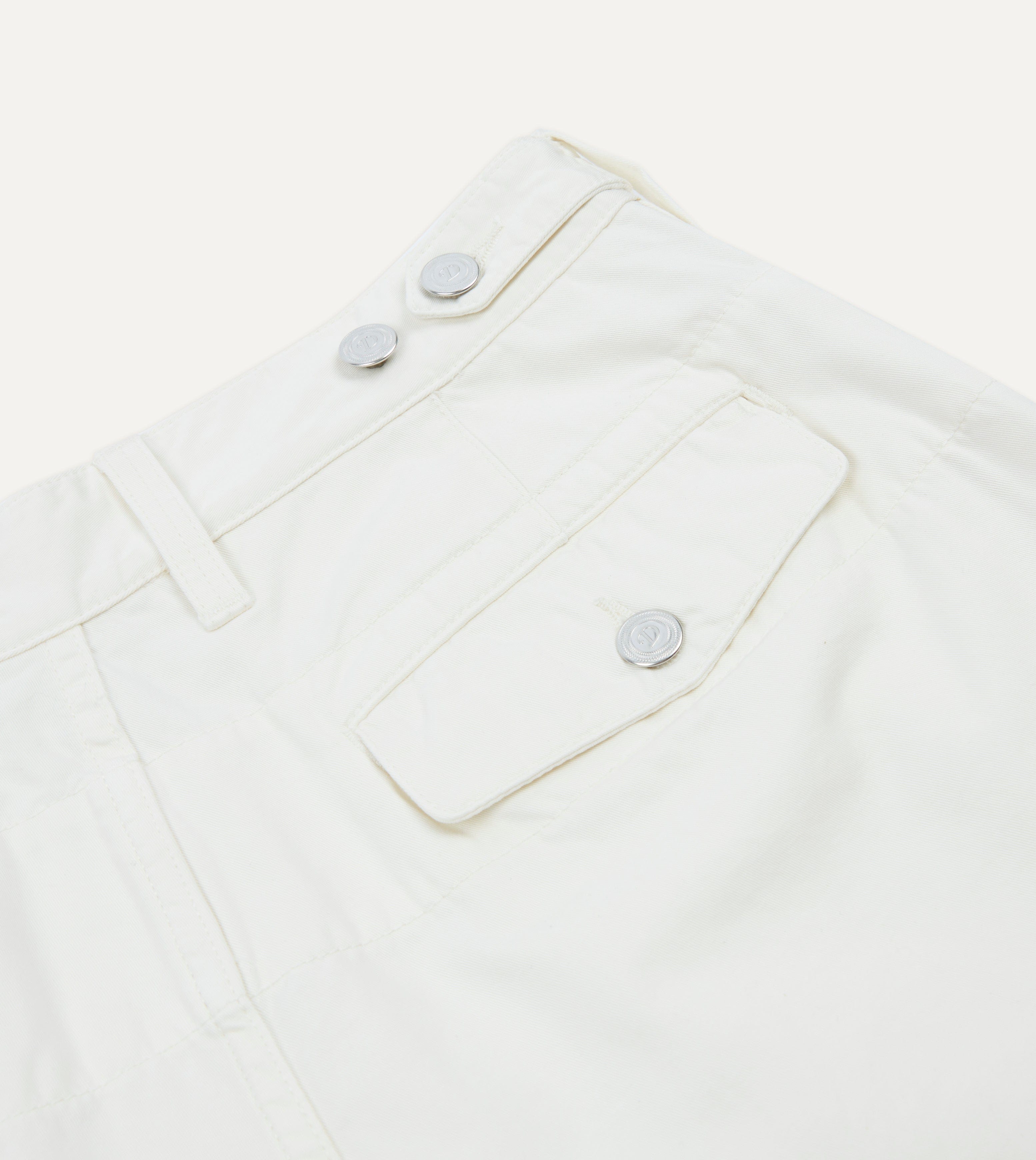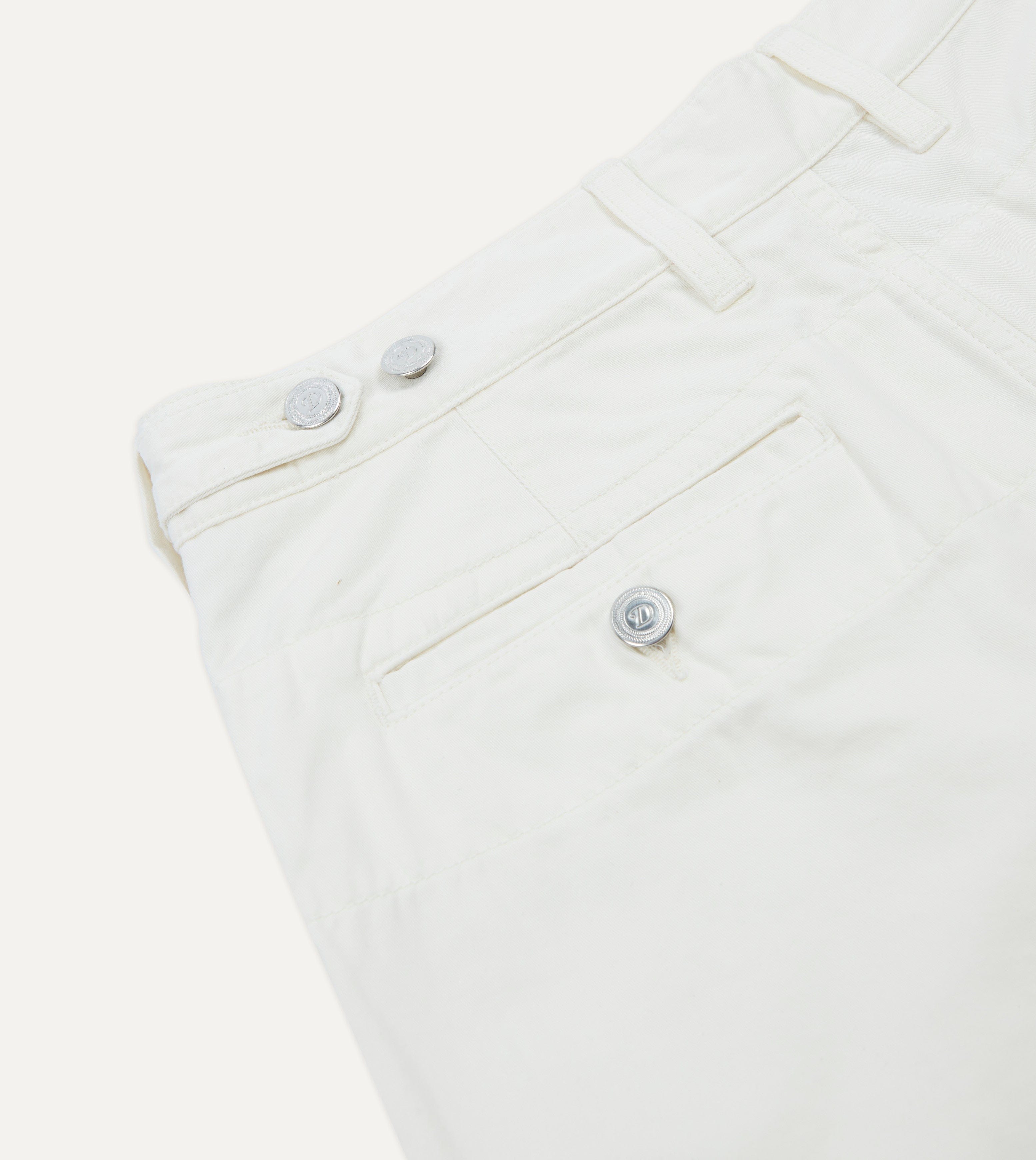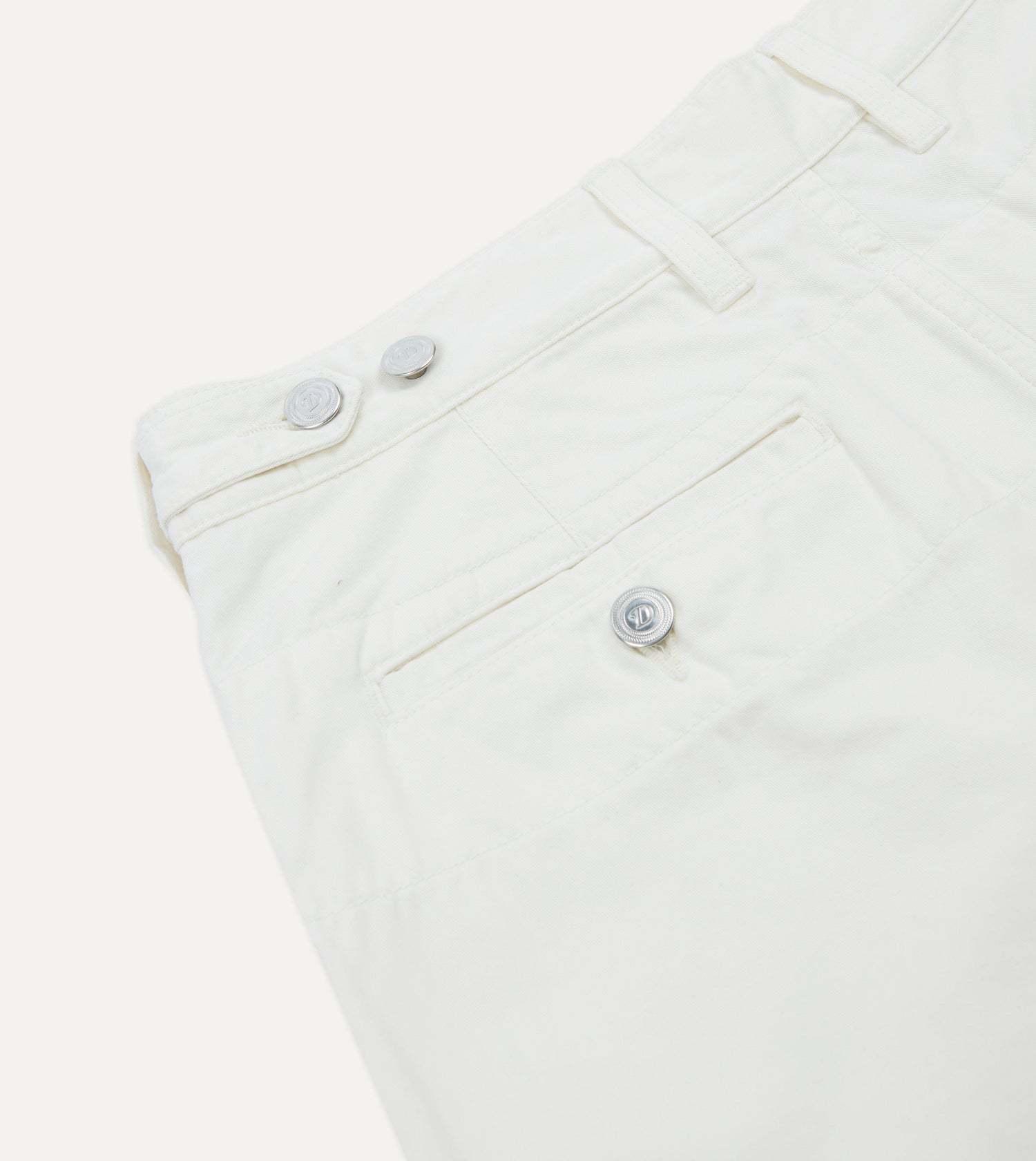 Washed Ecru Cotton Twill Single-Pleat Shorts