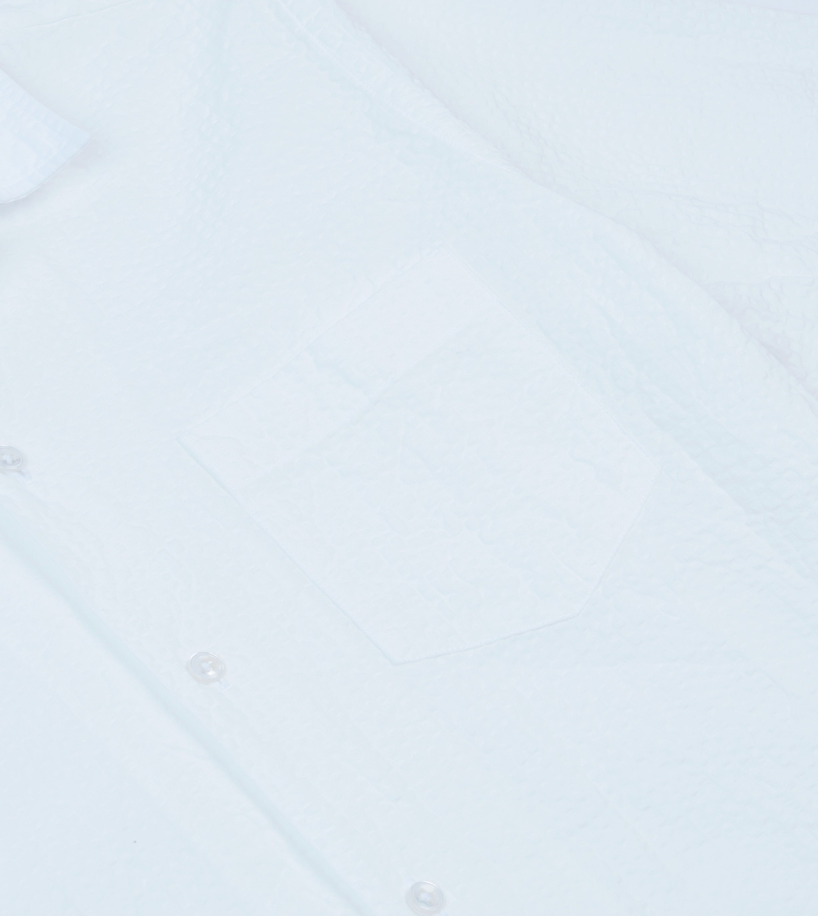 White Cotton-Linen Seersucker Camp Collar Short Sleeve Shirt