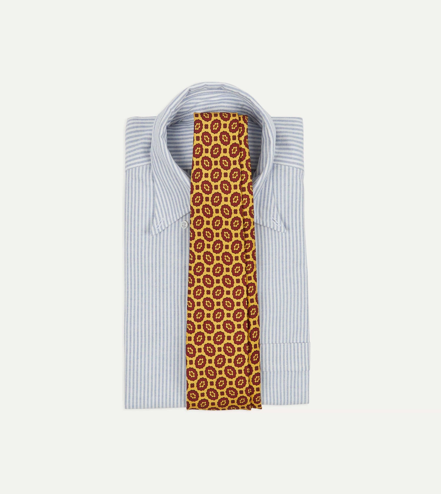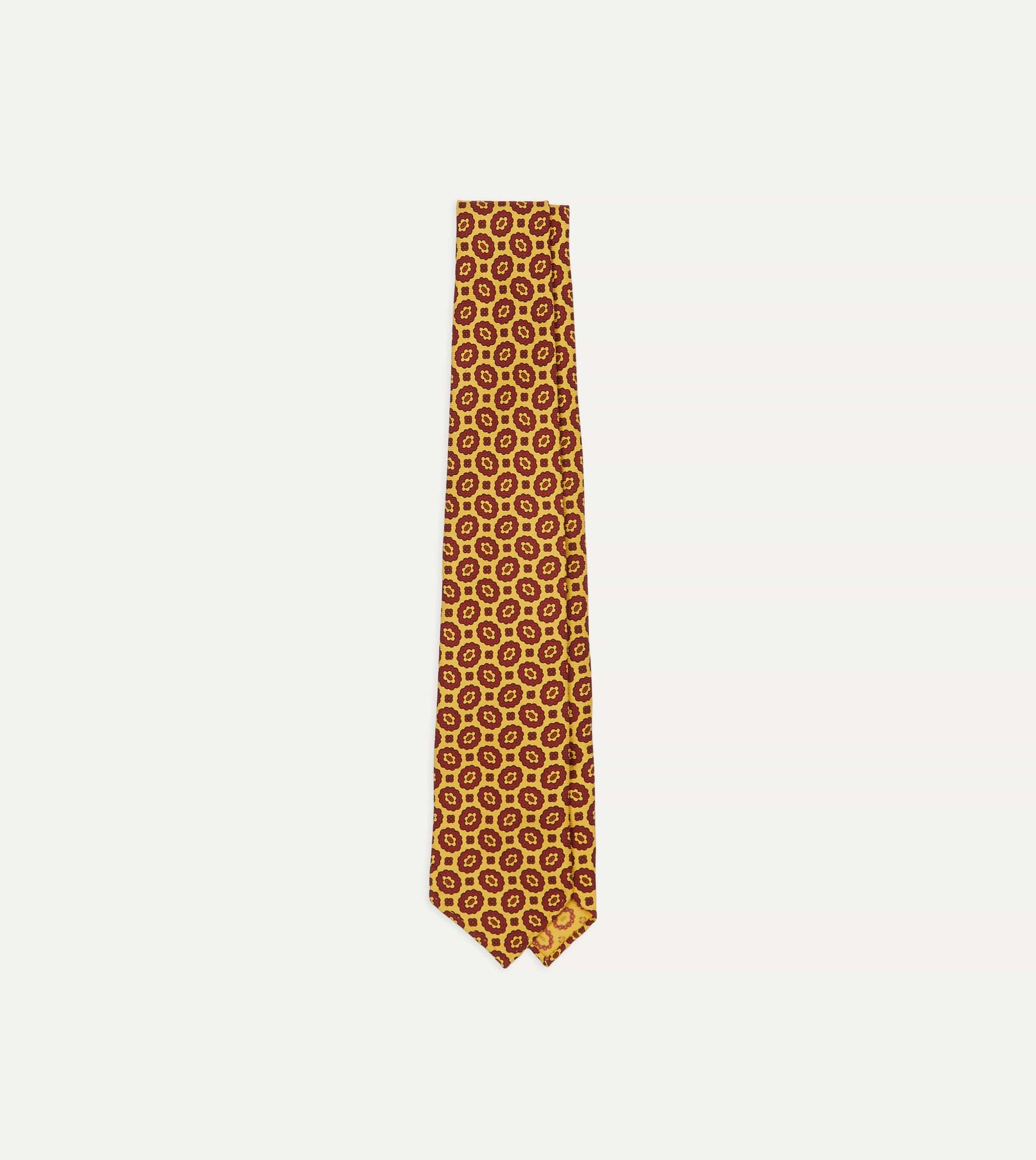 An elegant necktie, handmade in London and featuring an archival tile design, hand-printed in Macclesfield on 40oz Madder silk.